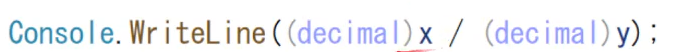 정수 앞에 (decimal)을 붙이면 형변환이 된다.