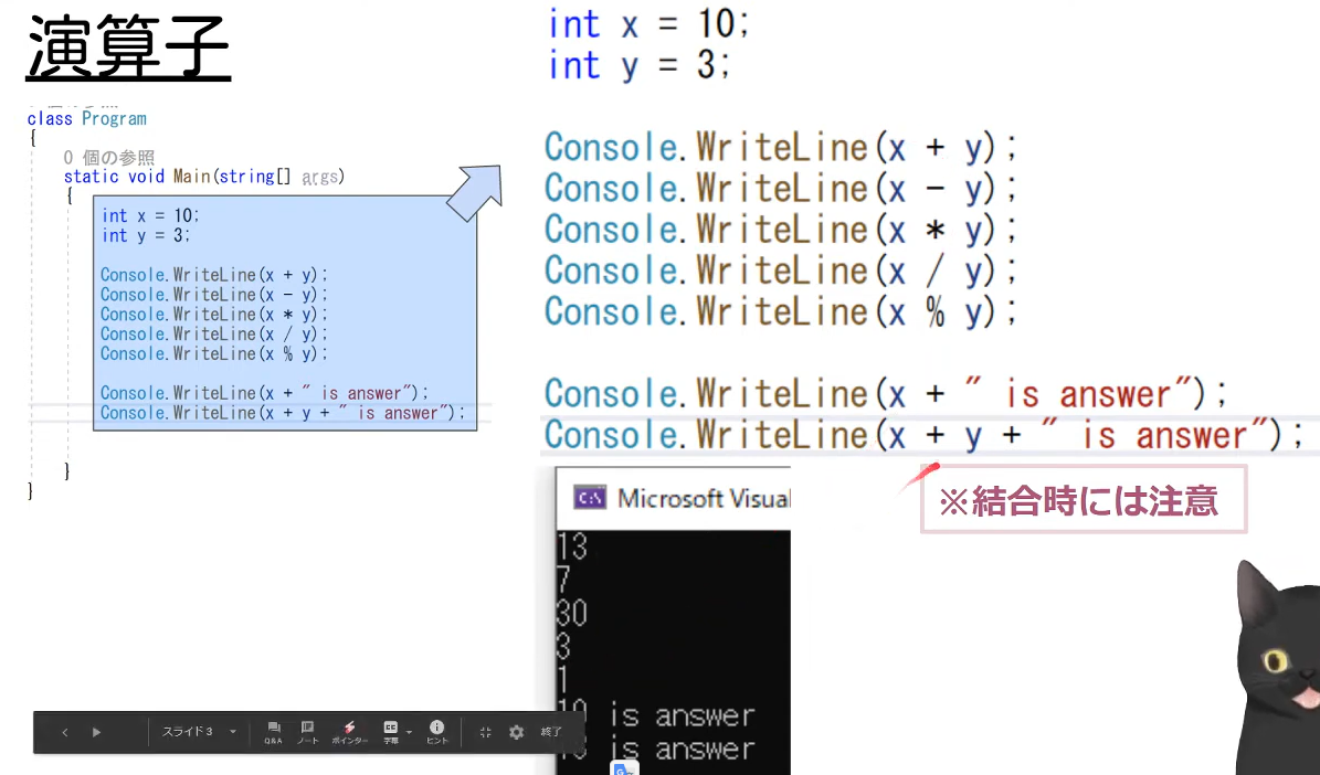 | はじめてのC# 丁寧に学ぶC#入門⑨【演算子+α】연산자 + a (1) | 2023.11.23 |
