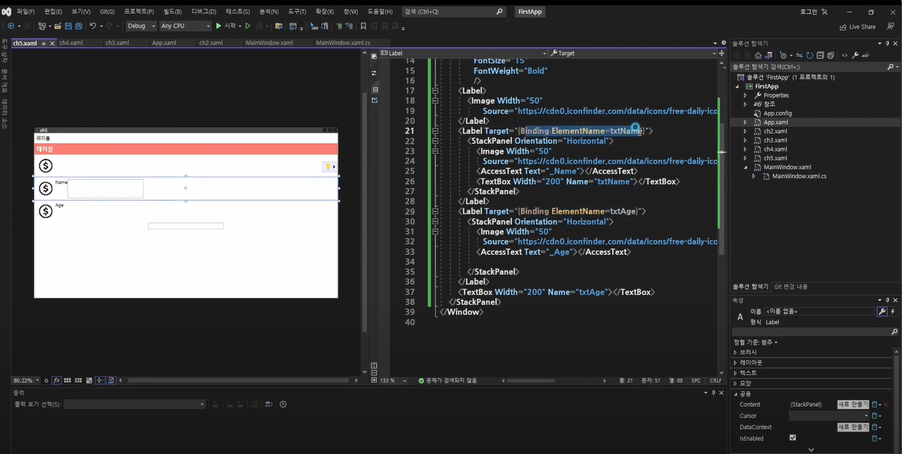 밖으로 빼도 Binding ElementName을 통해 텍스트박스와 연결이 됨.