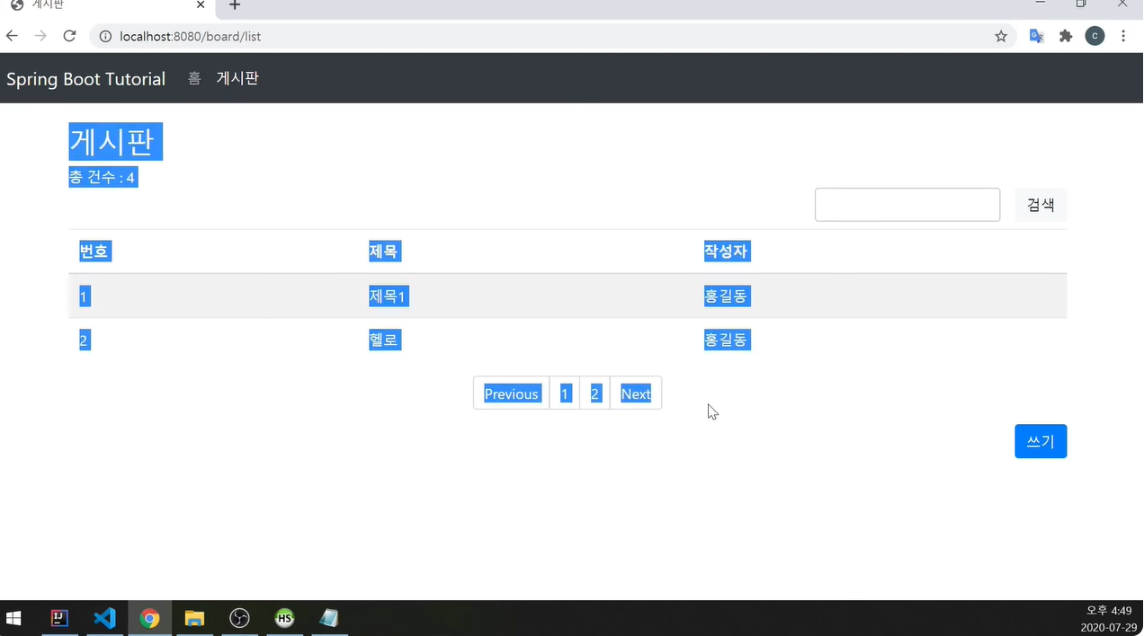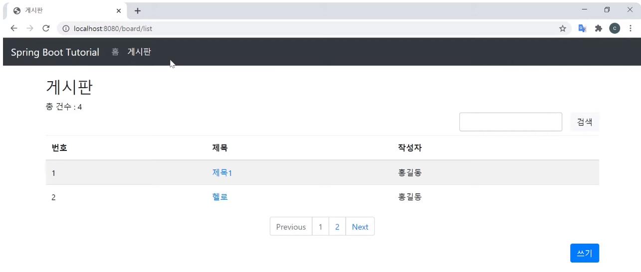 | Spring Boot으로 웹 출시까지 8. JPA를 이용한 페이지 처리 및 검색 (1) | 2023.12.08 |