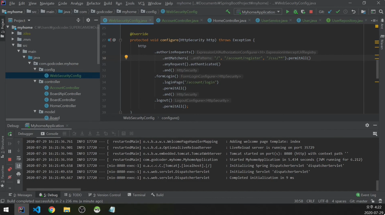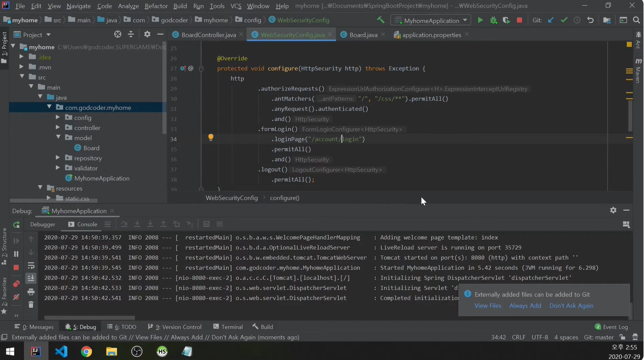 home, /account/register, /css를 제외하고는 로그인 필요.