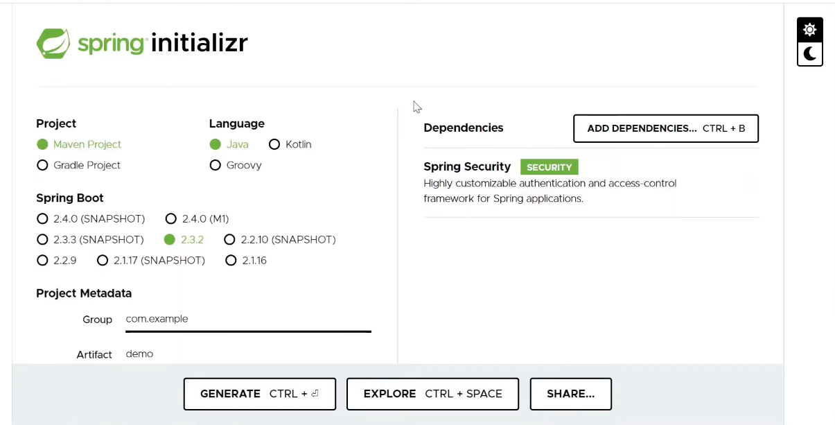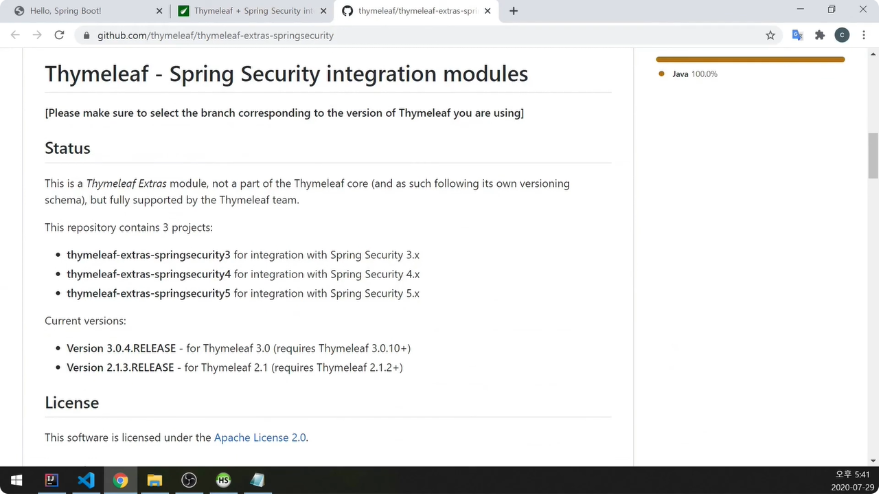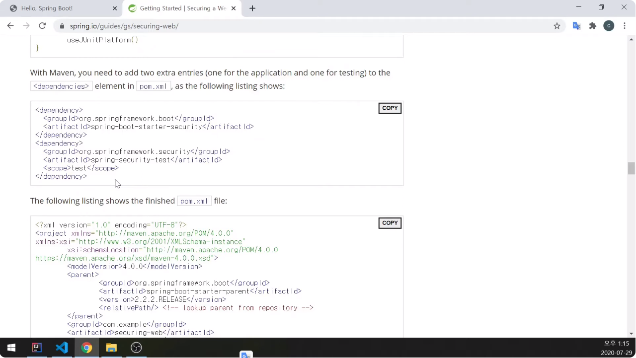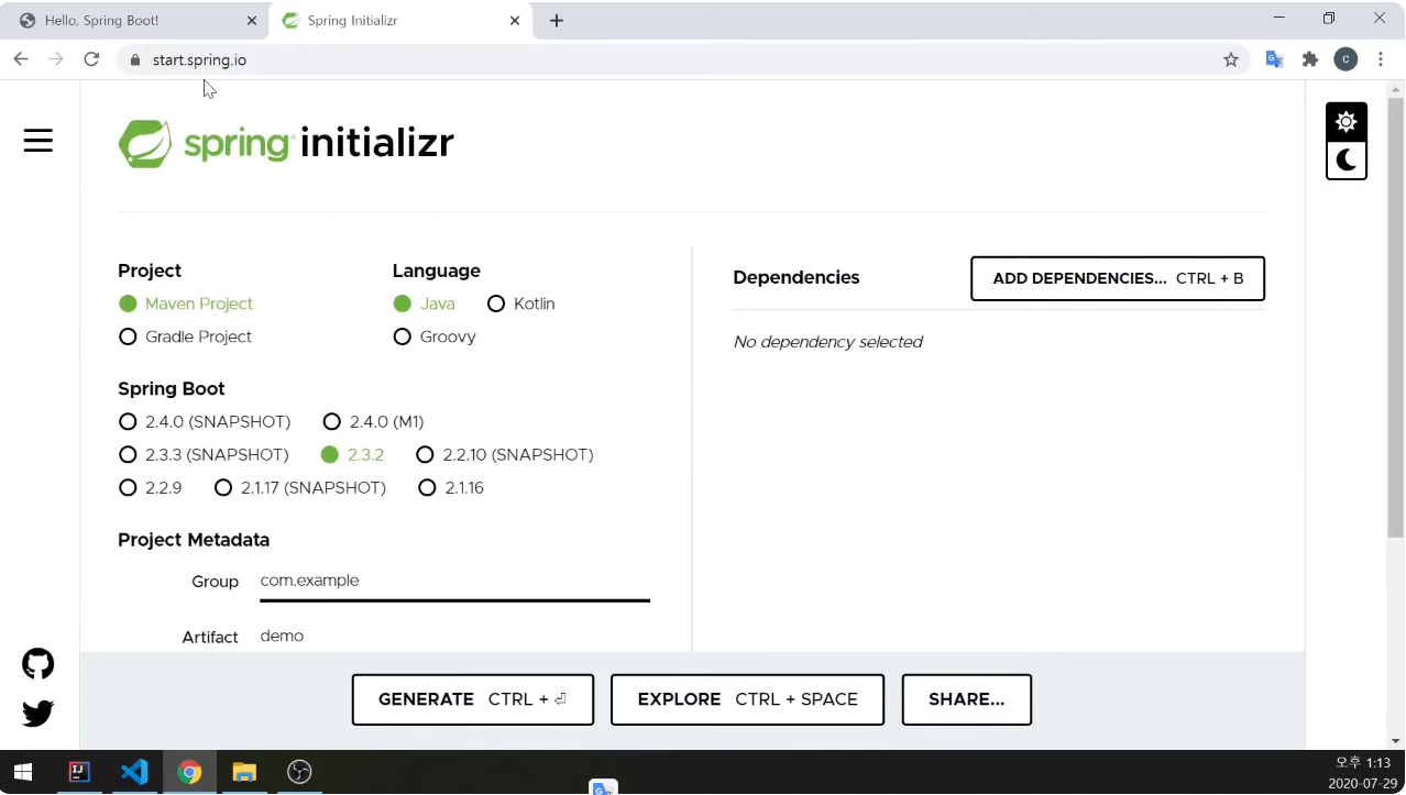 스프링부트를 사용하기 때문에 버전 생략이 가능.