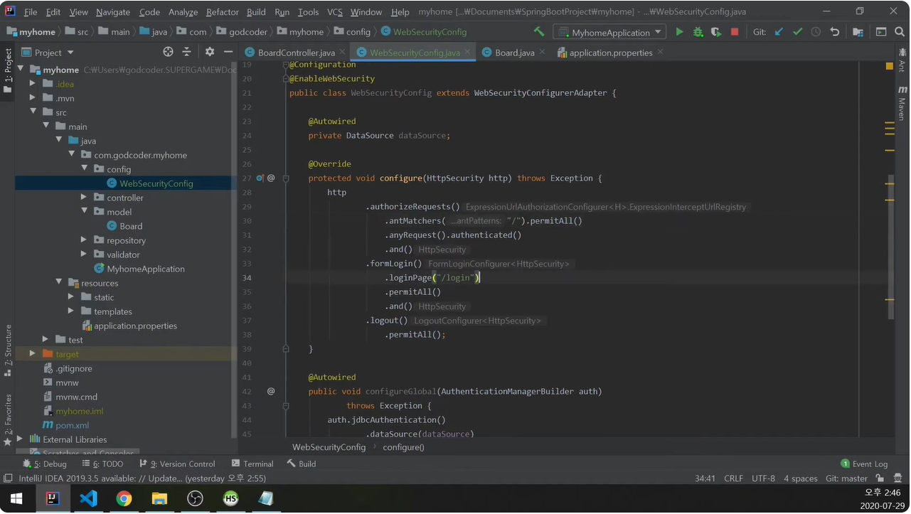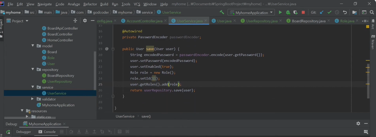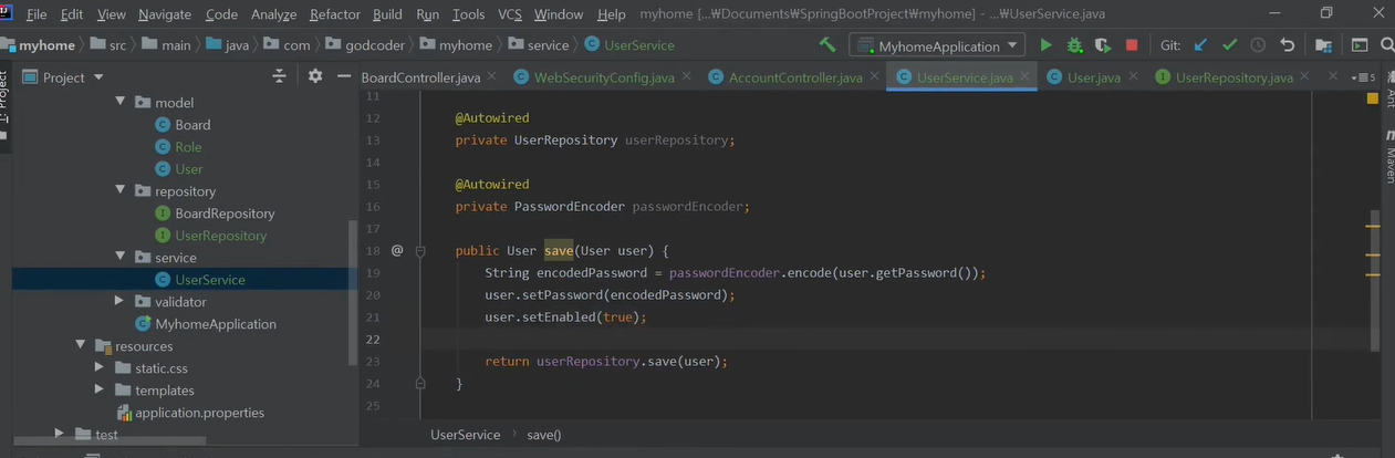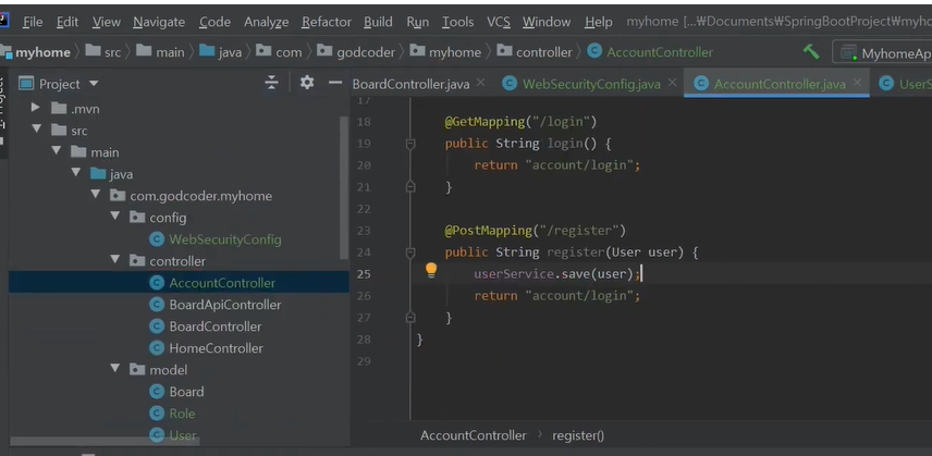 비밀번호같은 경우는 스프링에서 제공해주는 password인코더를 이용해서 암호화를 할 것임.