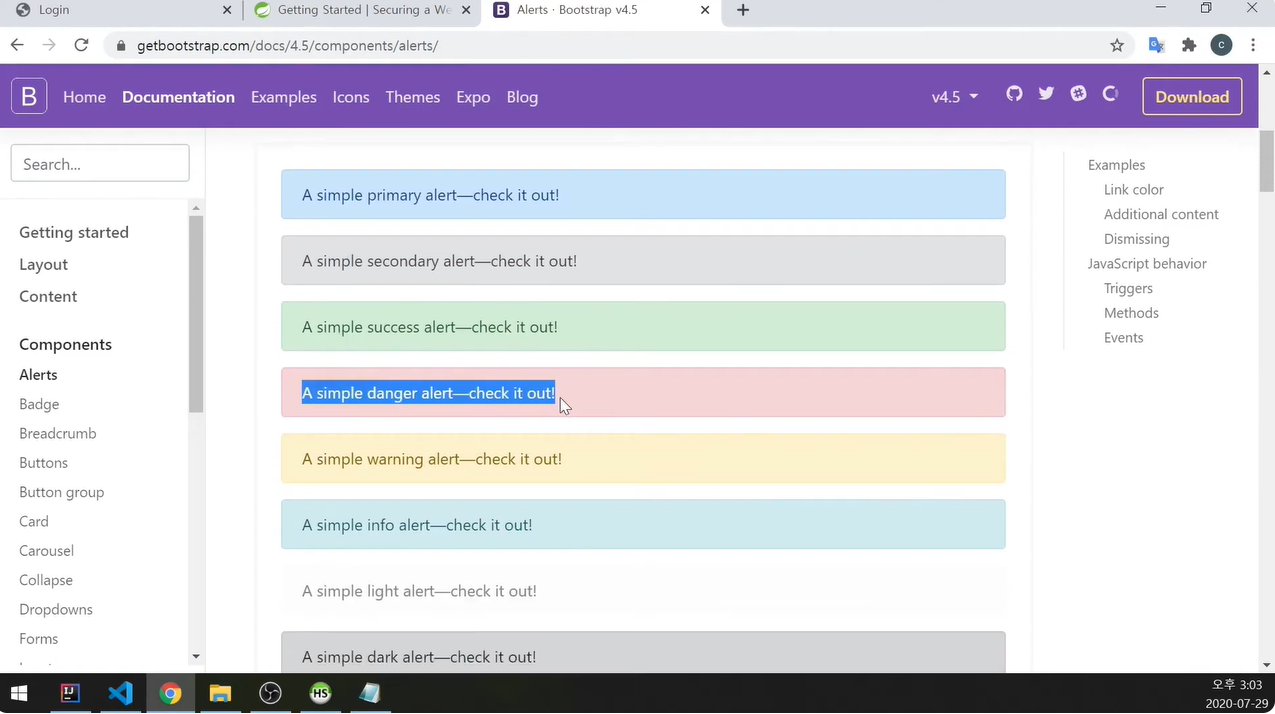 bootstrap에서 text-white 클래스를 주게 되면, 글씨가 흰색으로 바뀜.