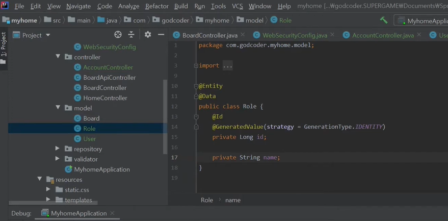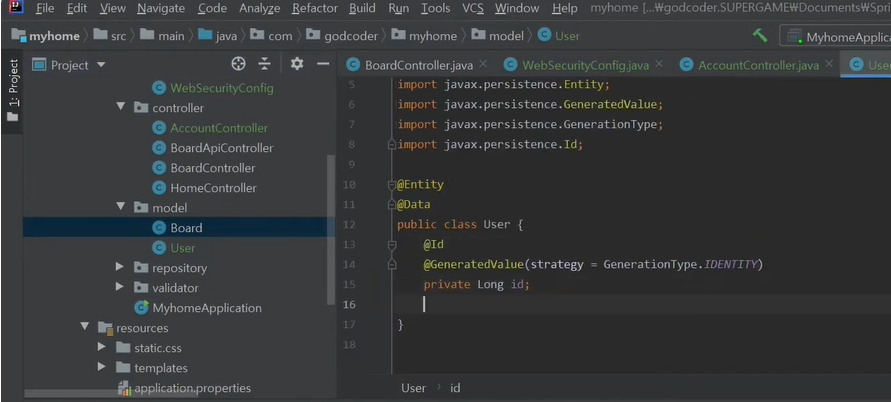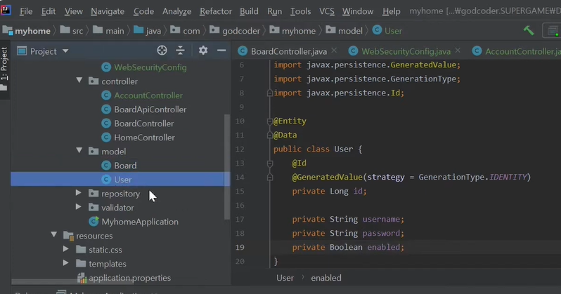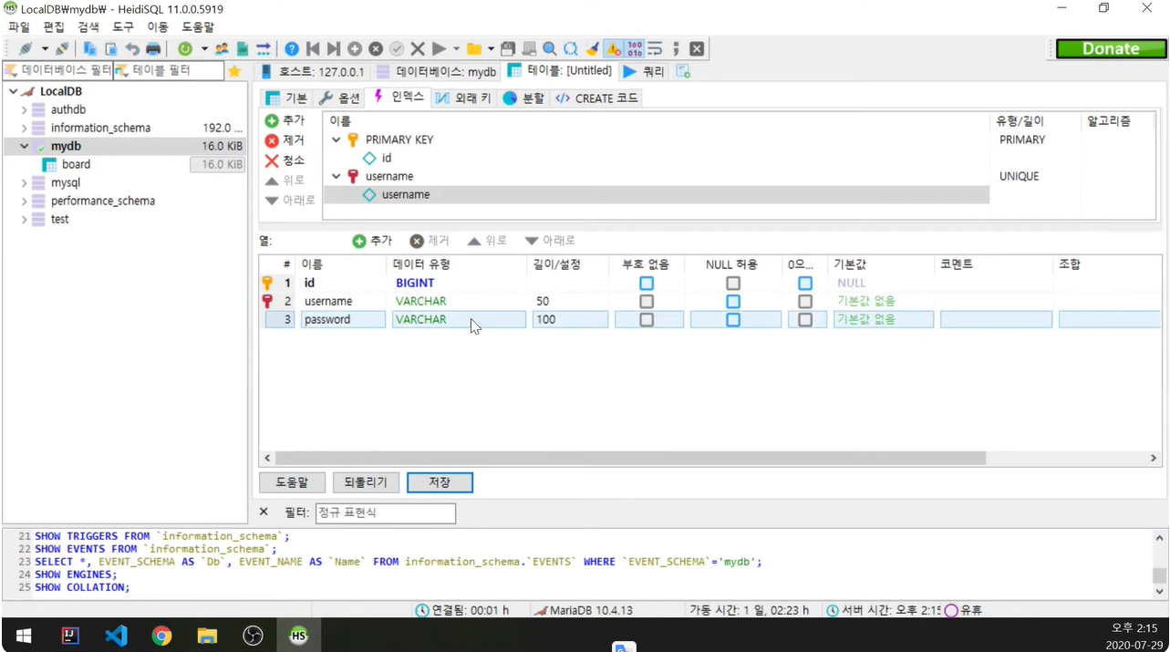 DB를 사용하고 있기 때문에 DB에 사용자 테이블을 만들 것이다.