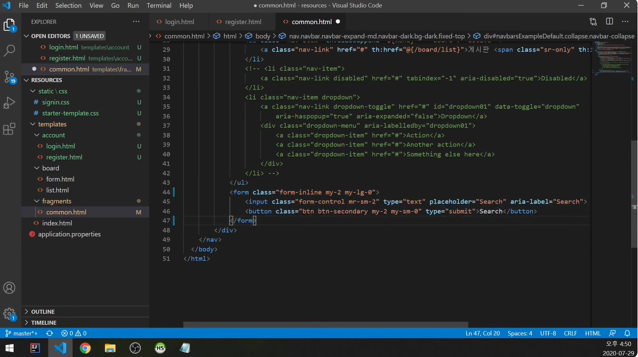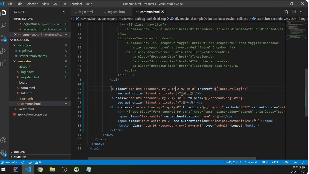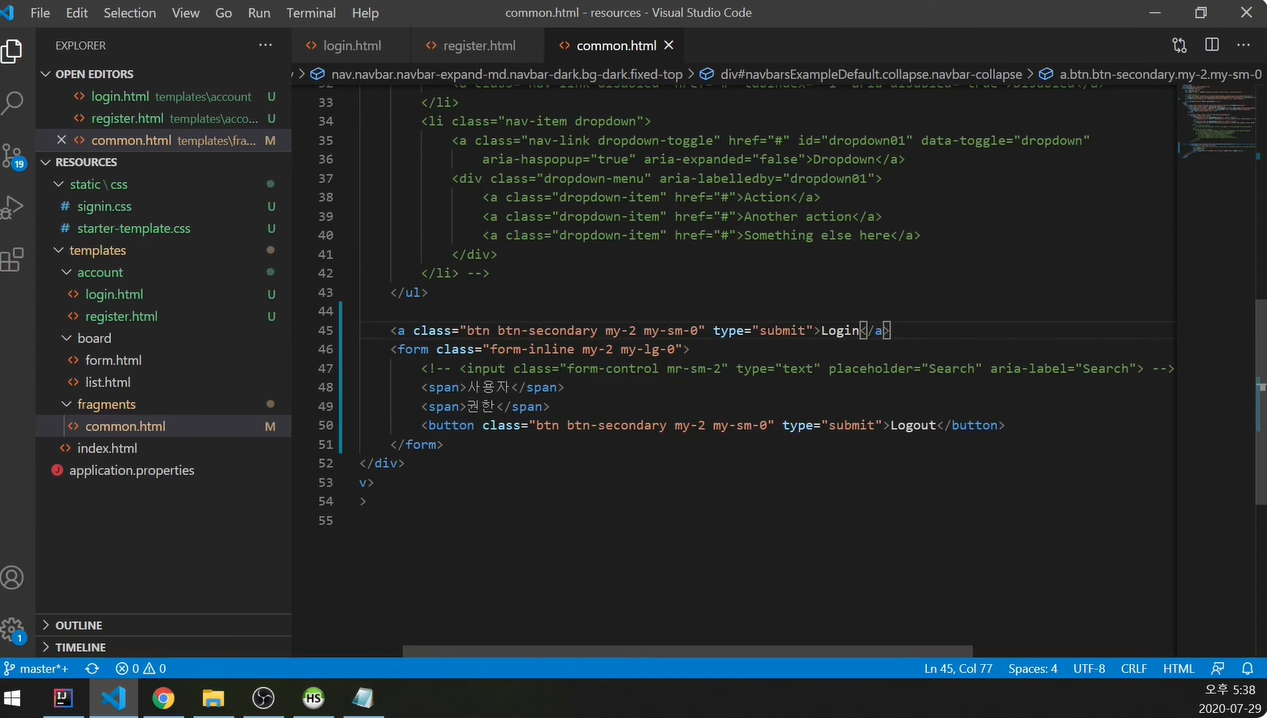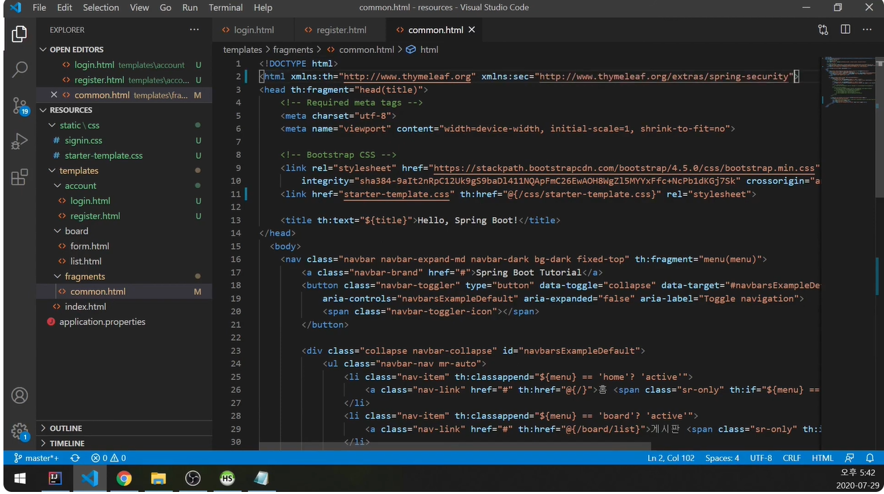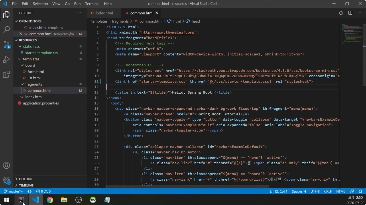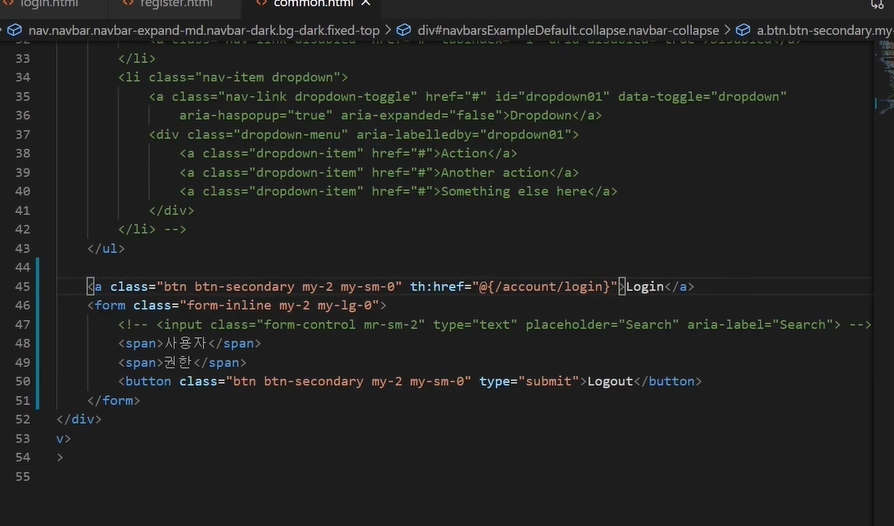 fragments/common.html 파일이 상단메뉴를 공통적으로 사용하는 파일.