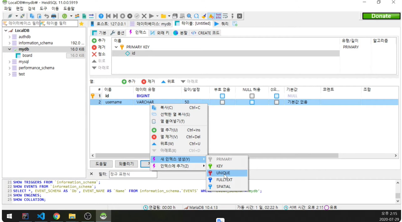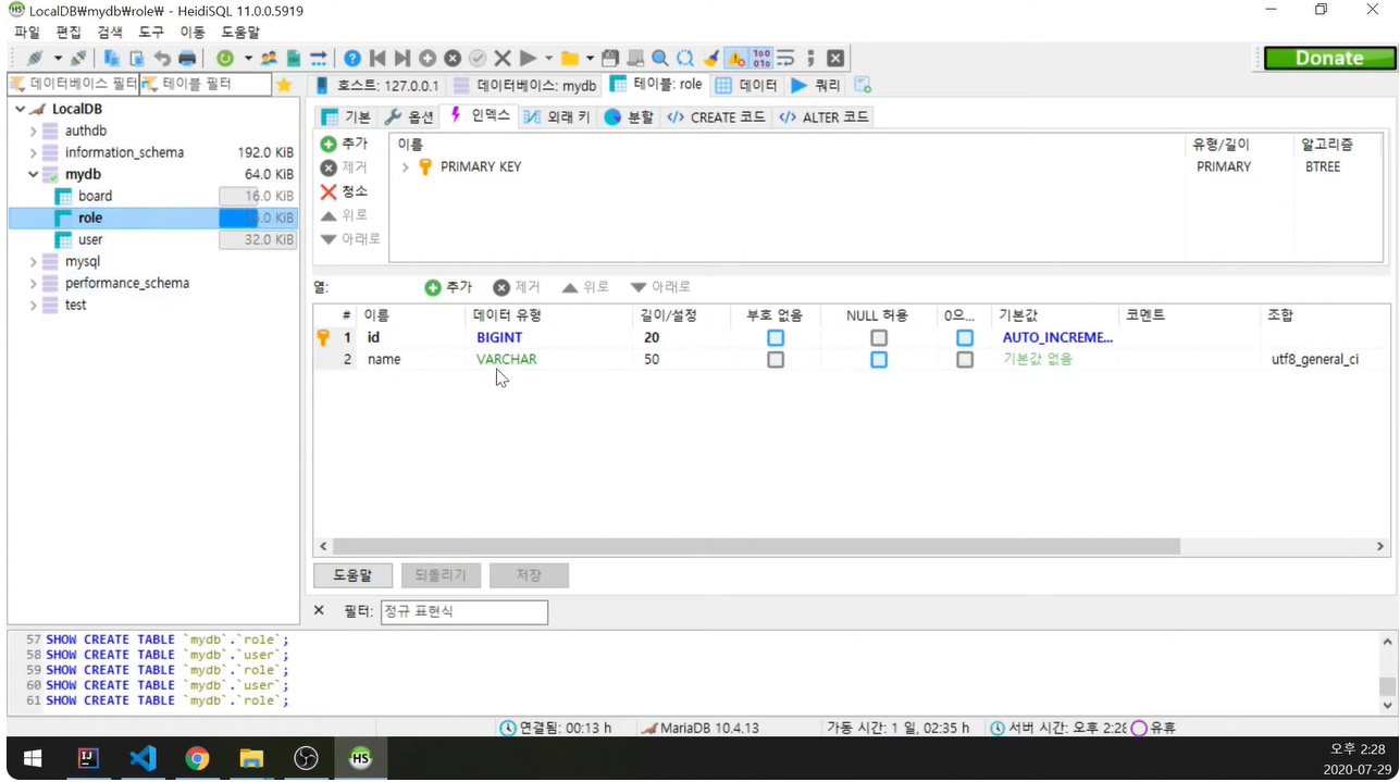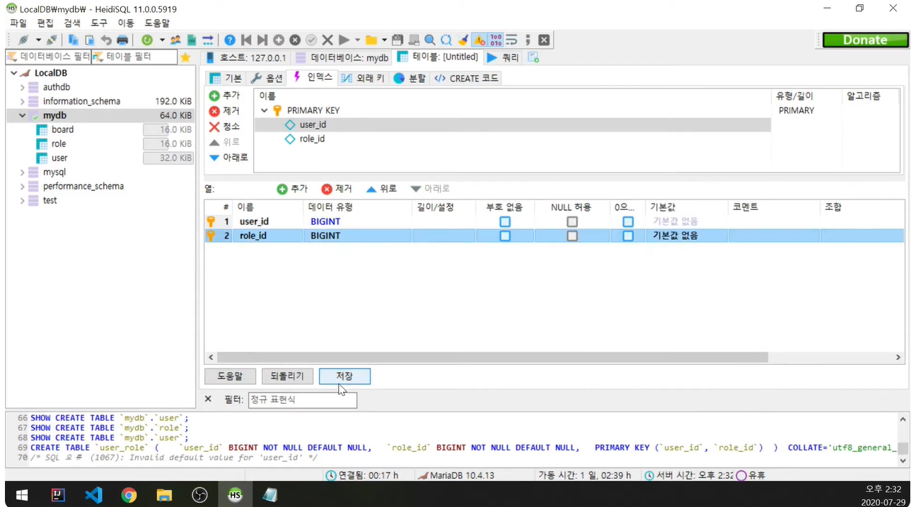DB에서 사용하기 위해 사용자테이블을 만듦.