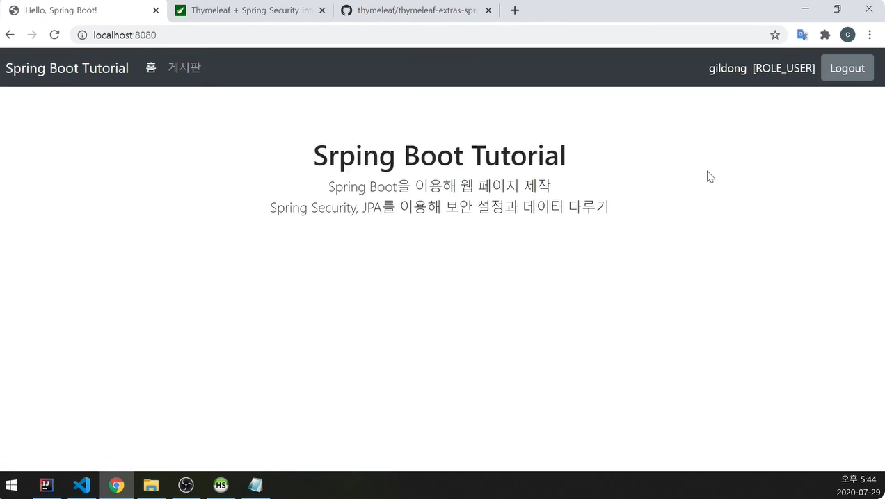 사용자와 권한 그리고 Logout 버튼이 보일지 분기처리를 해줘야 함.