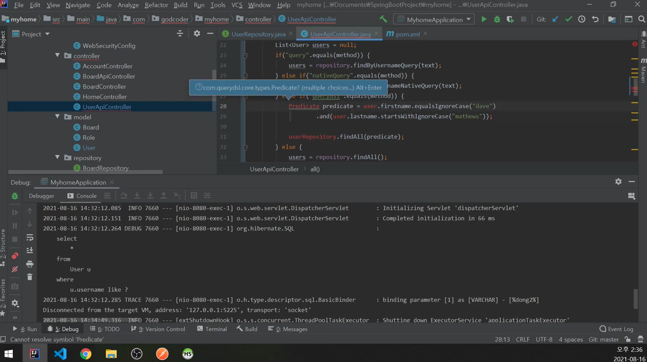 querydsl에 있는 Predicate를 import함.