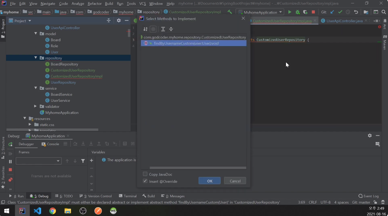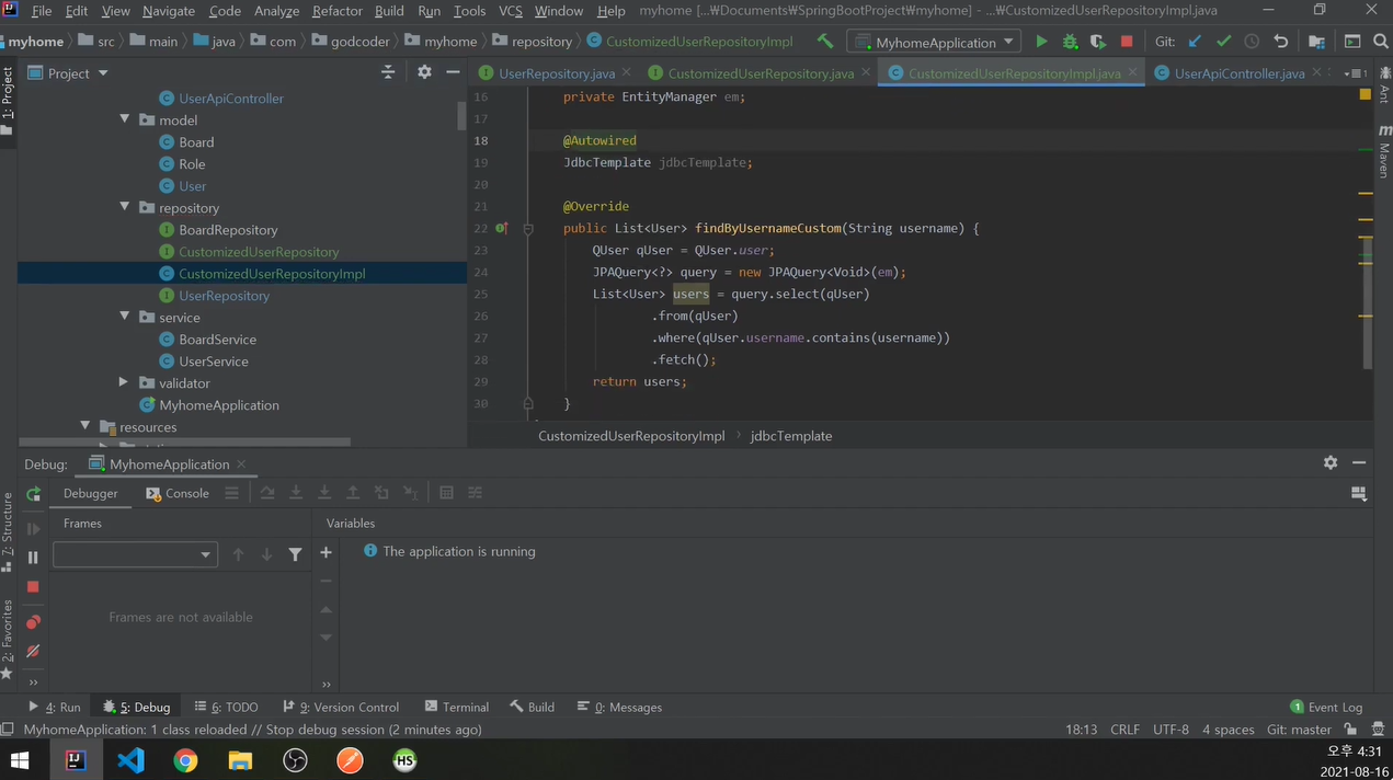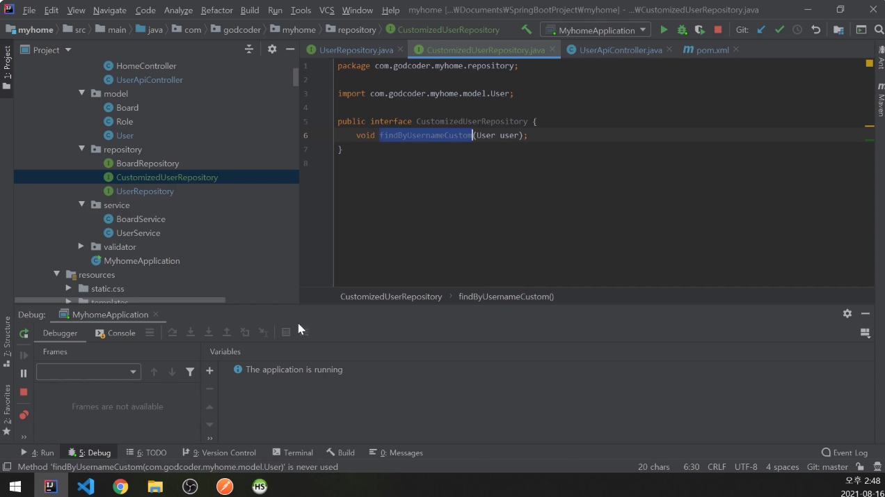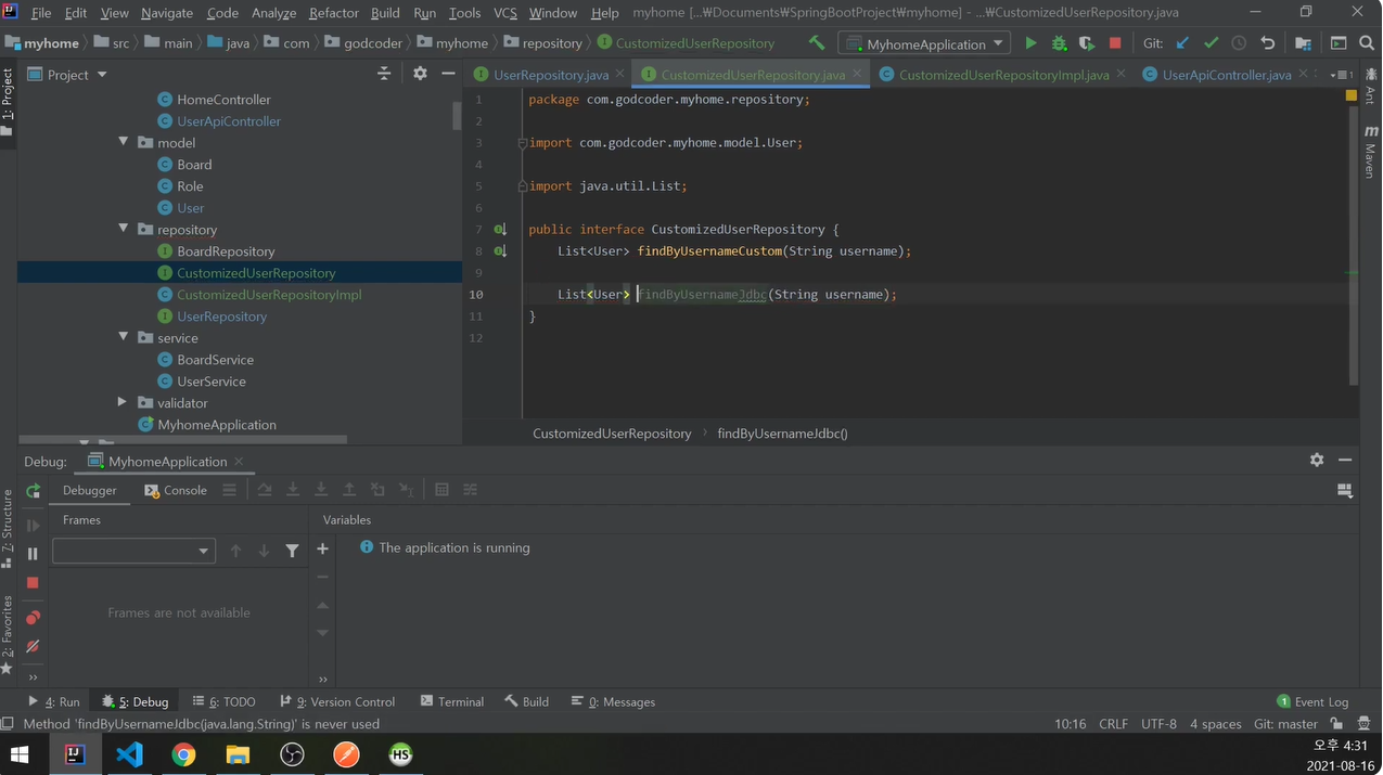 UserRepository에 CustomizedUserRepository 추가.