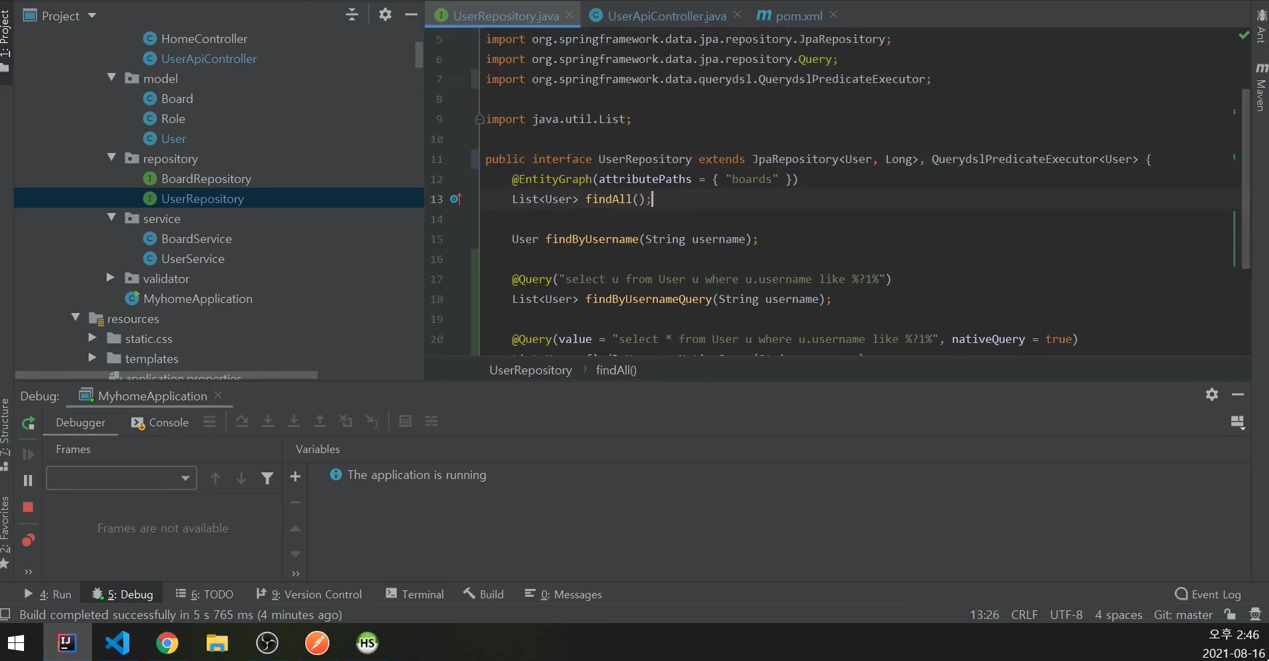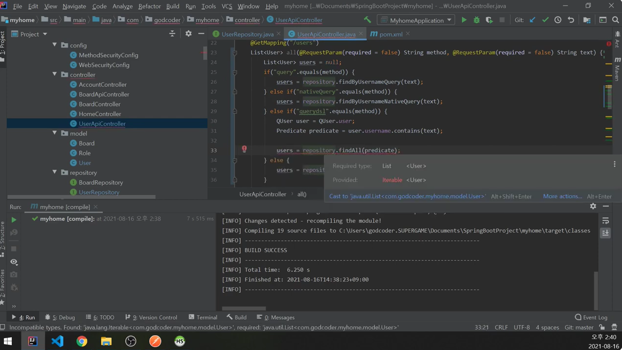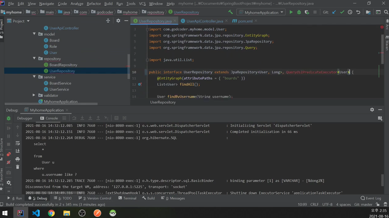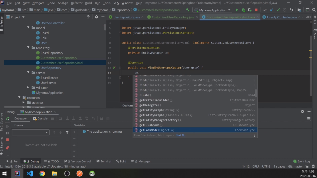 UserRepository에 CustomizedUserRepository 추가.