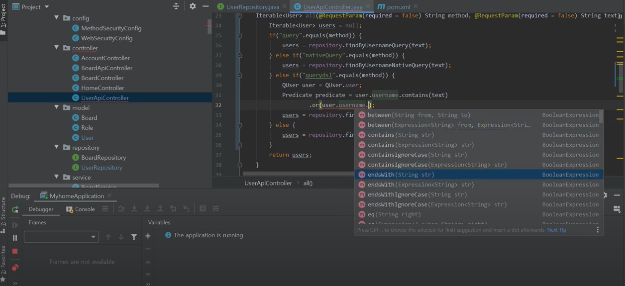 메소드가 query일 때에만, 방금 지정한 findByUsernameQuery가 호출이 된다.