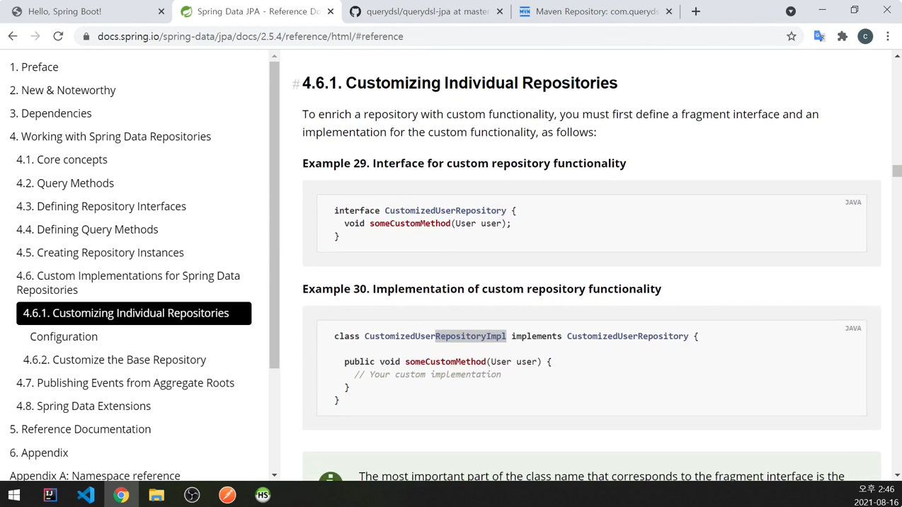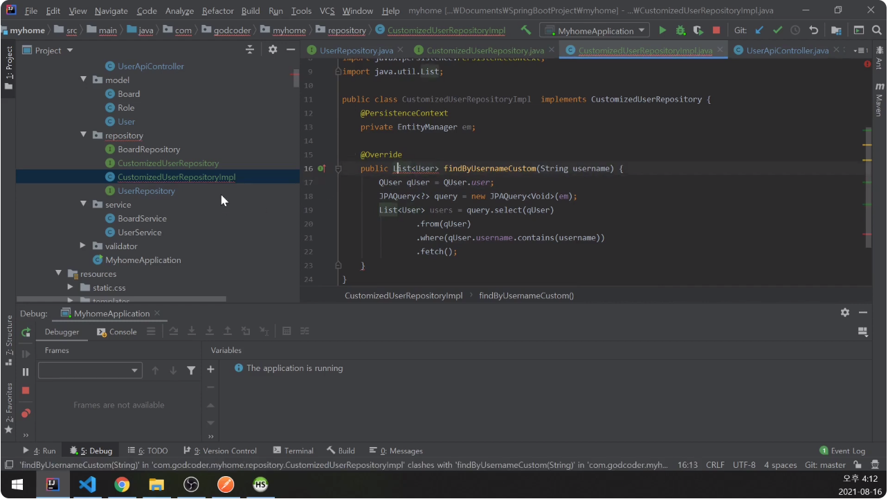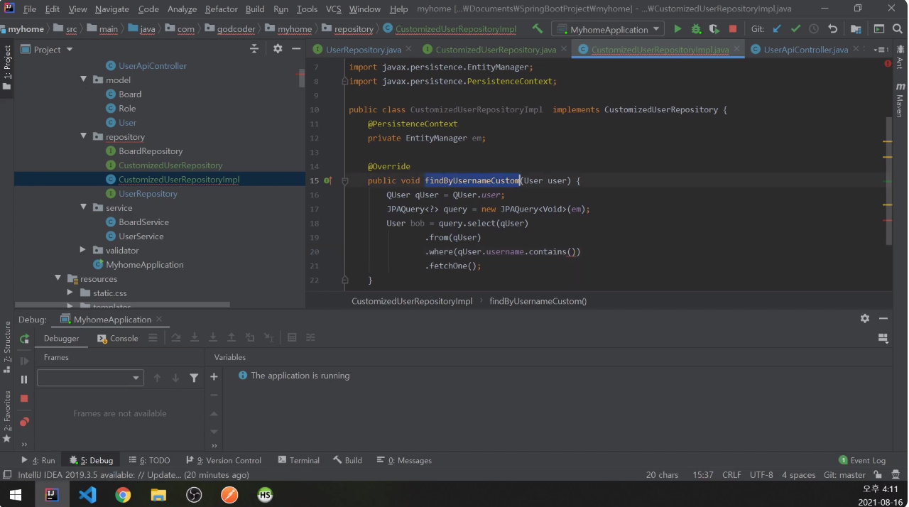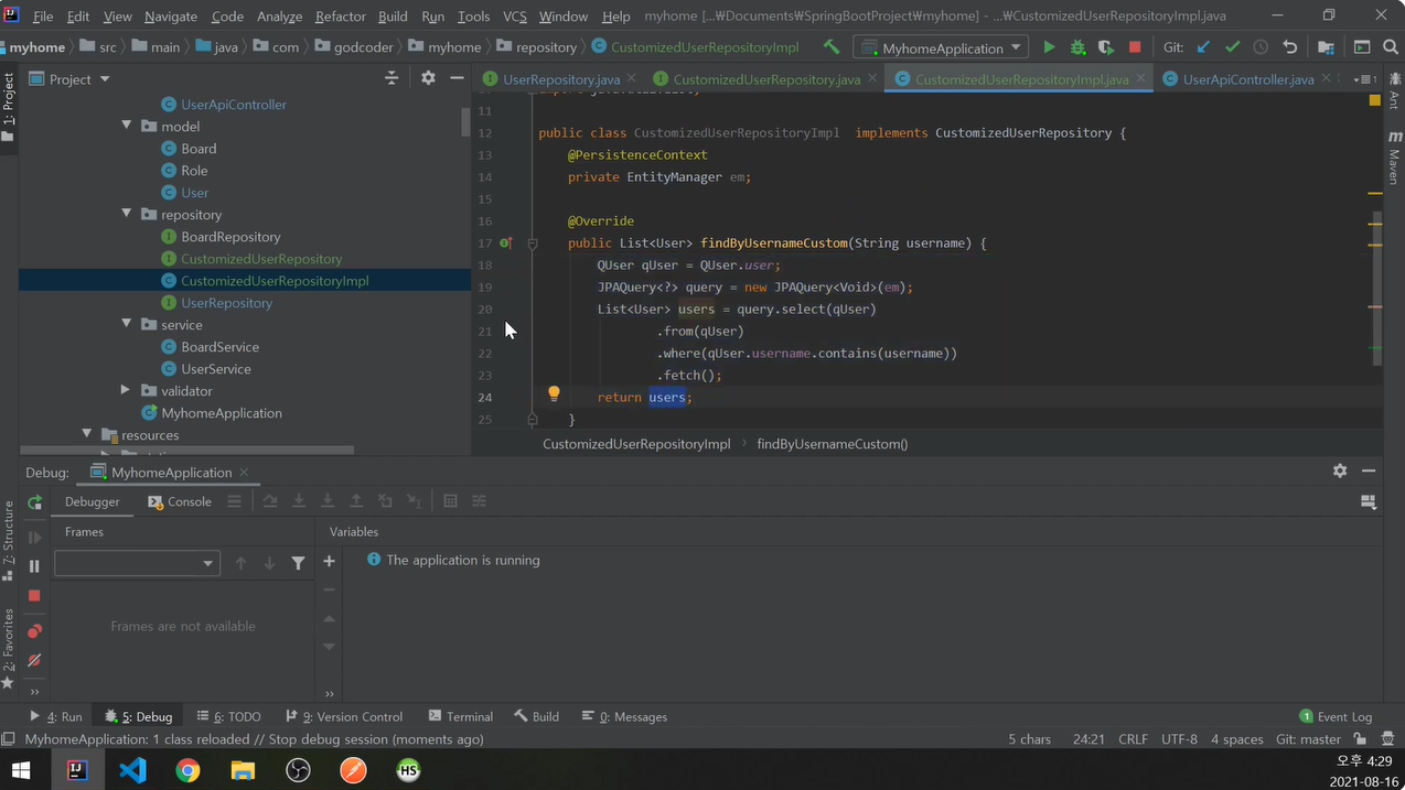 CustomizedUserRepository를 작성함.