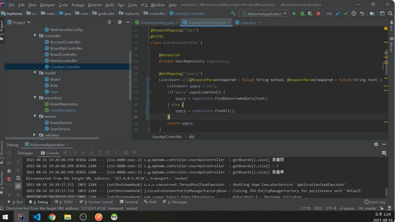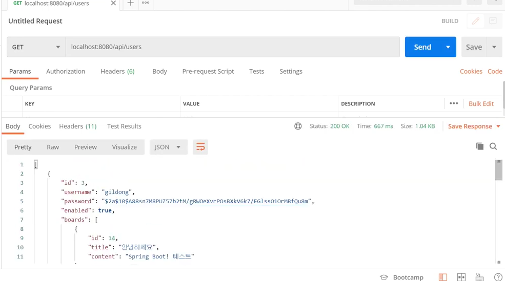알아보기 쉽게 하기 위해서 user 클래스에서 boards에 @JsonIgnore 설정.
