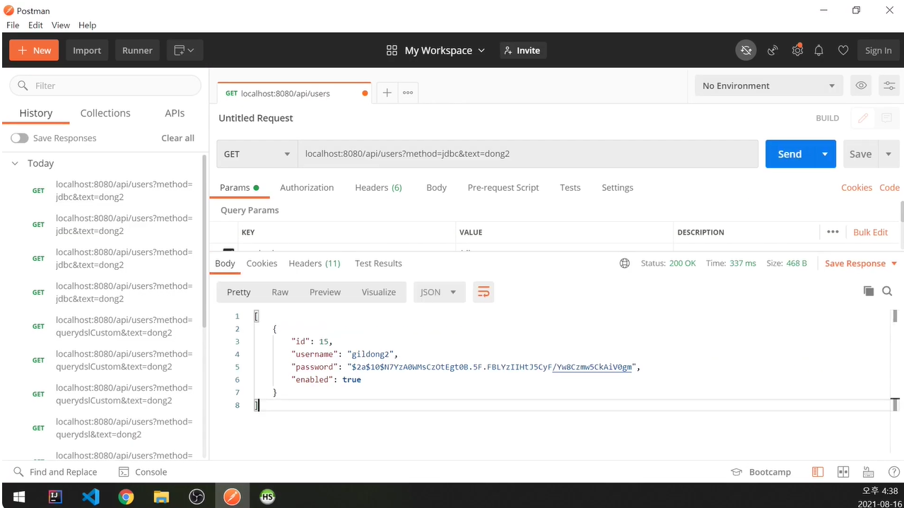 지금까지는 레파지토리를 이용해서 findByUsesrname 등 예약된 키워드를 사용해서 데이터를 가져왔었음.
