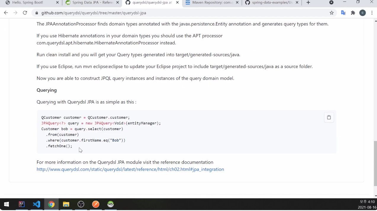 가장 간단하게 queryDSL을 이용해서 조회하는 방법을 알아봄.