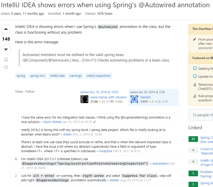 @SuppressWarnings("SpringJavaInjectionPointsAutowiringInspection")