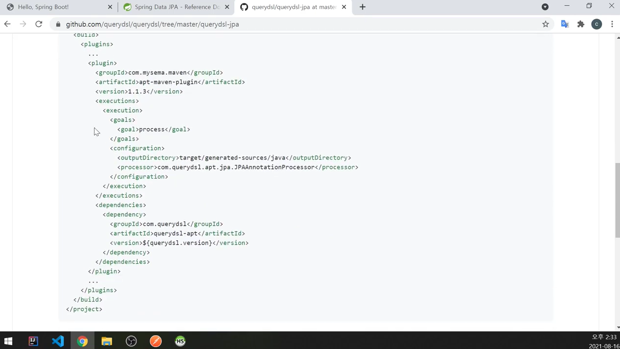 pom.xml 플러그인에 복사해서 붙여 넣었다.
