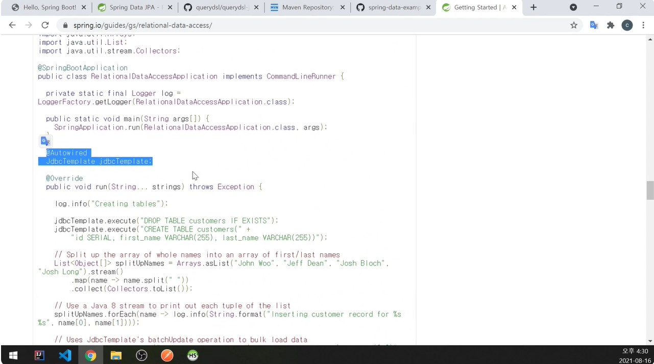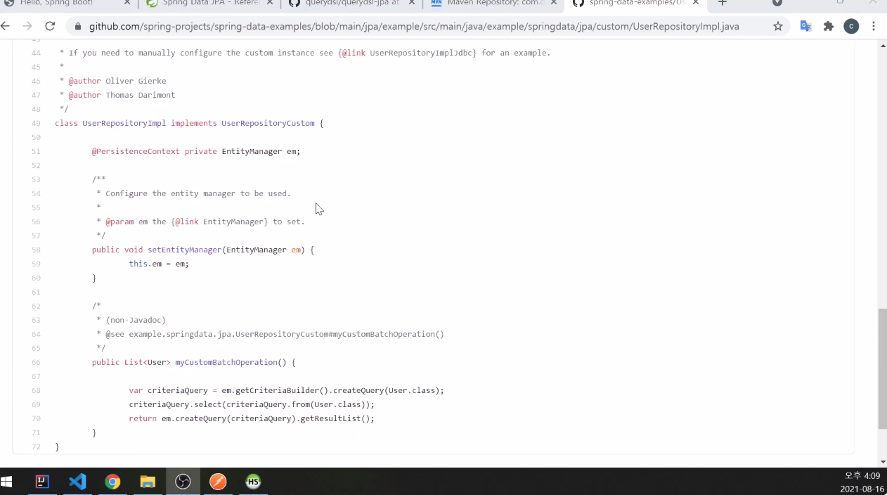 Spring Data JPA에서 샘플을 가져오겠다.