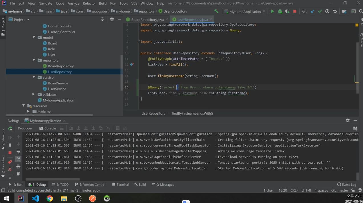 JPA를 통해 커스텀 쿼리를 작성해보겠다.