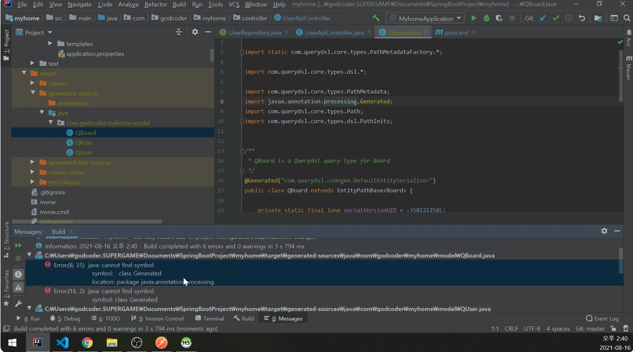 바뀌고나면 clean, compile을 해라.