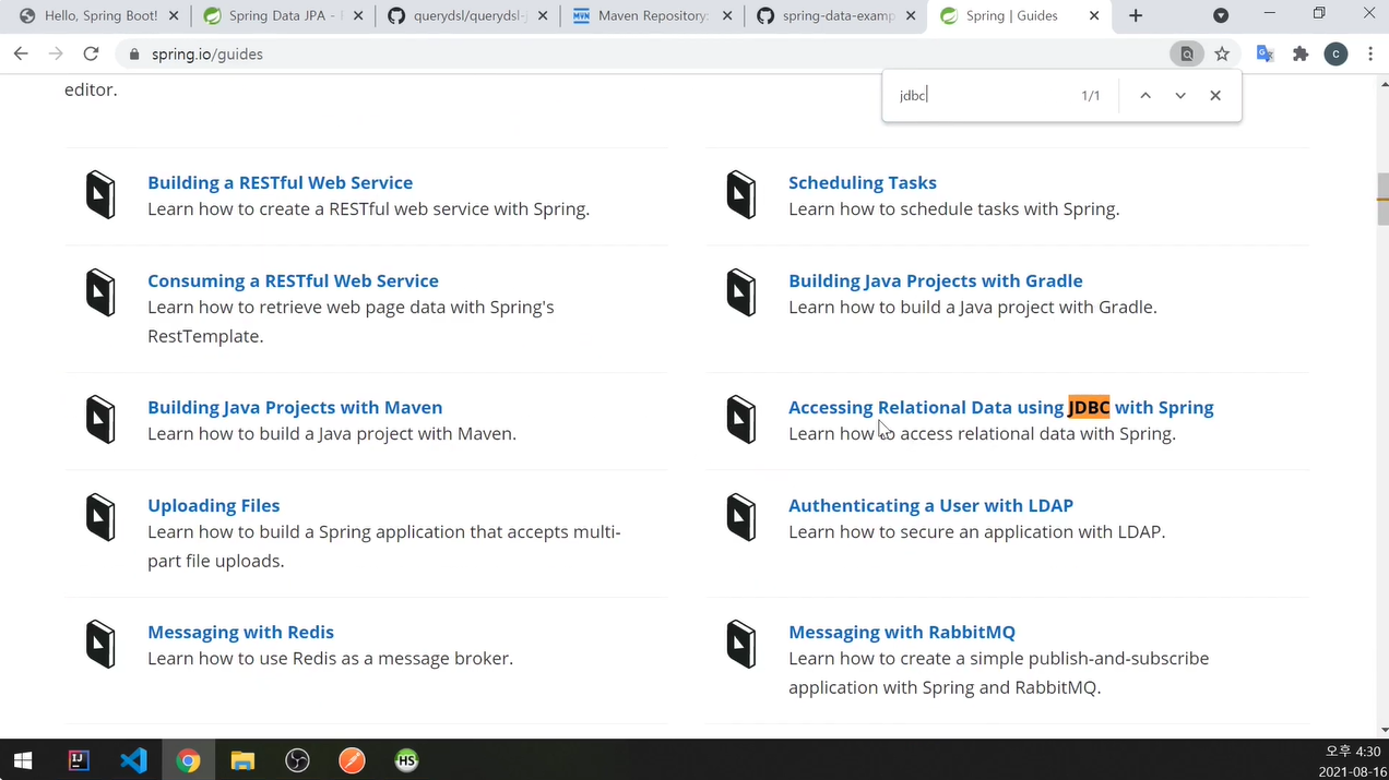 소스대로 하지 않고 스프링 홈페이지에 있는 방법대로 해볼 것임.