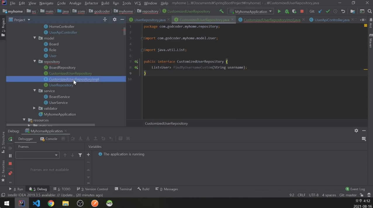 CustomizedUserRepository 인터페이스 하나 생성.