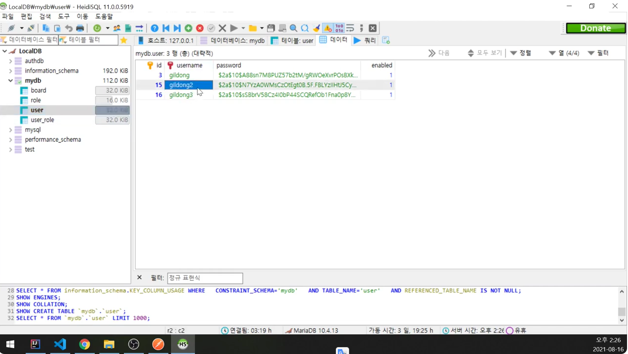 쿼리에 의해 데이터가 조회되는 것을 확인 했음.