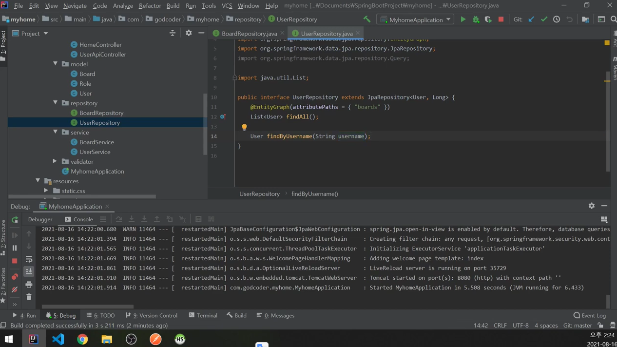 findByUsernameJdbc를 생성해보겠음.