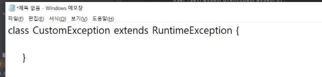 보통 따로 선언하기 보다는 runtimeException을 상속받음.