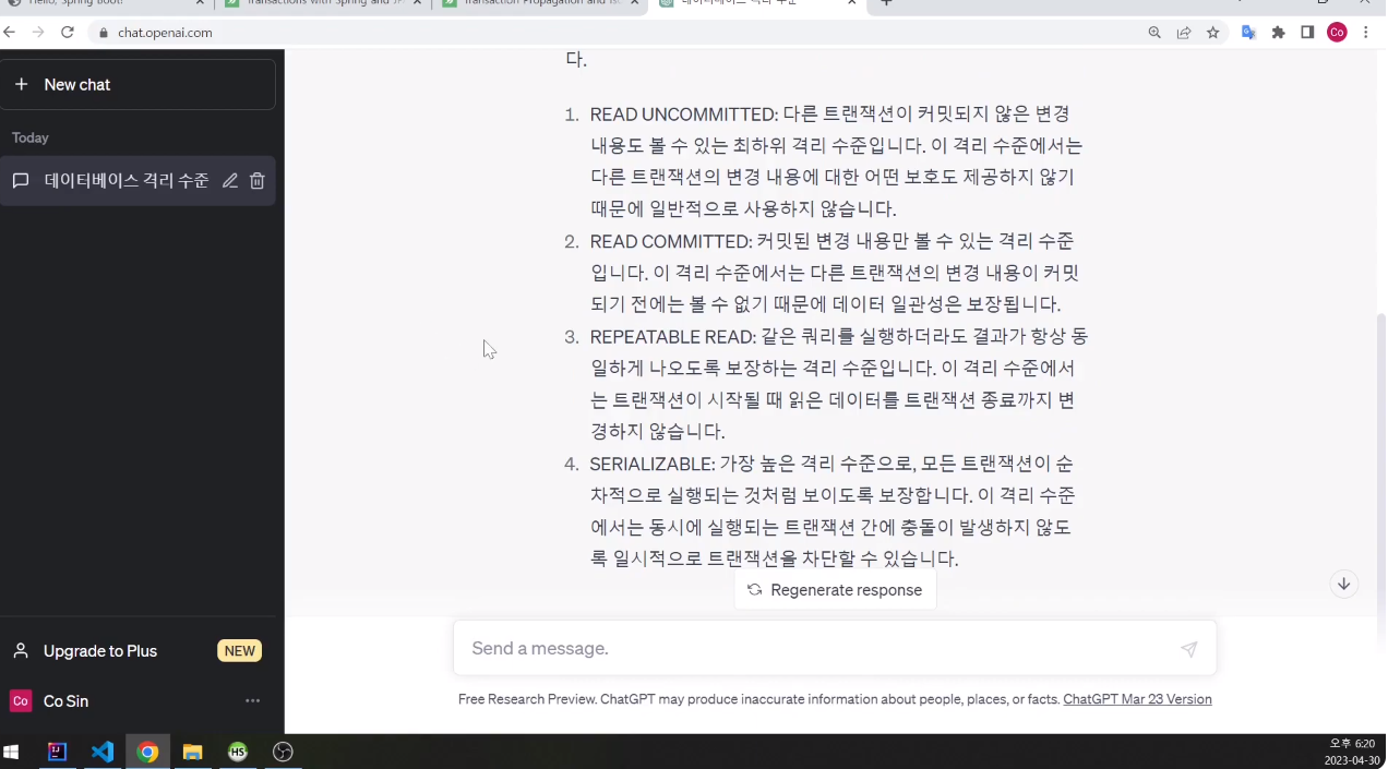 SERIALIZABLE은 동시에 접근을 할 때, 어떤 로그를 셀렉트하고 있으면, 다른 셀렉트를 하는 것이 불가능.