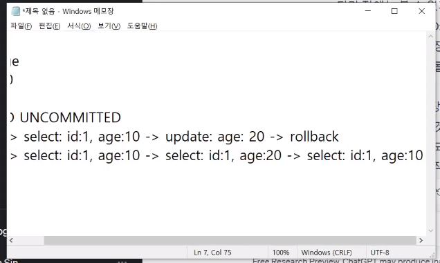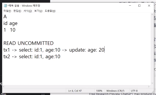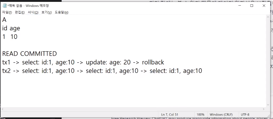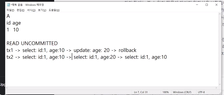 여기서 age 업데이트를 20으로 하고 커밋은 안했다.