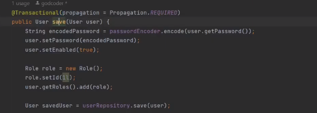 사용자의 권한을 셋팅해서 최종적으로 userRepository에 저장.