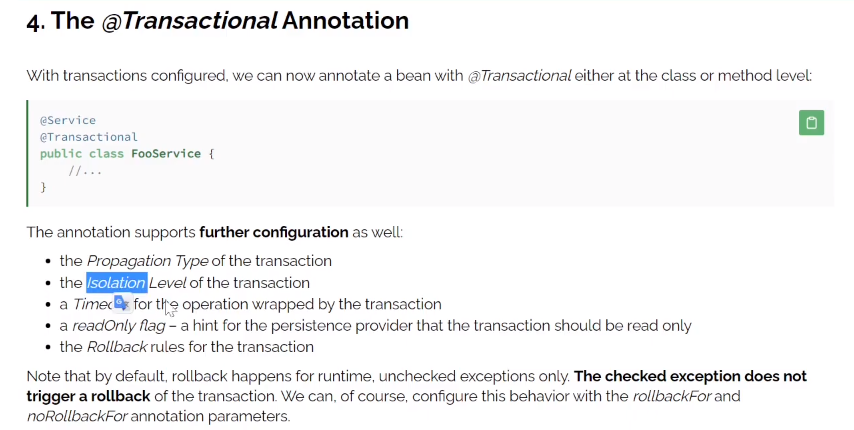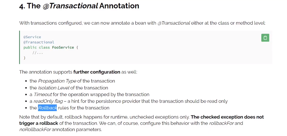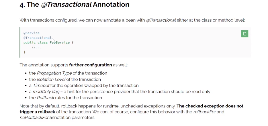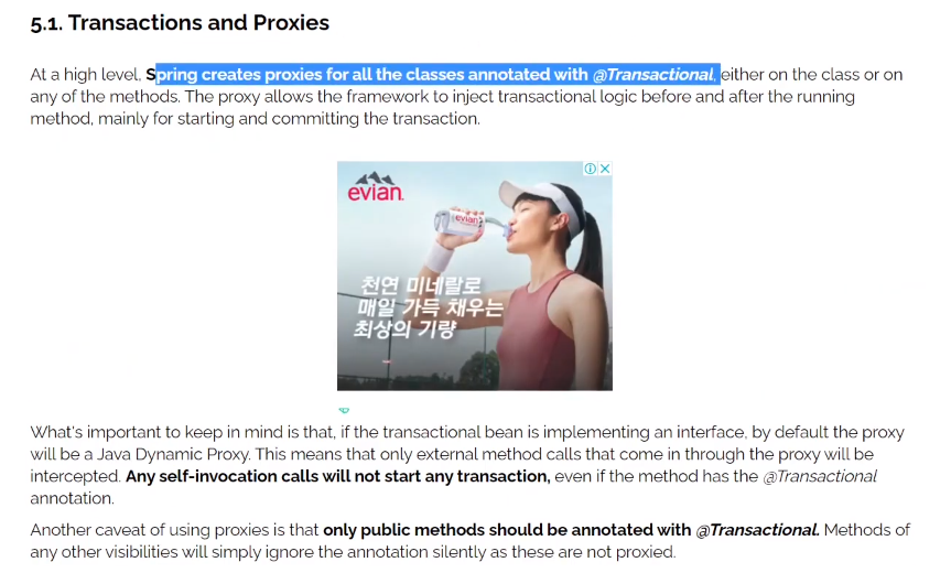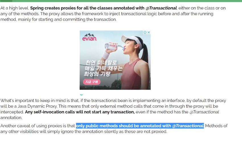 쉬워보이지만, 어노테이션으로 @Transactional을 하다보니 몇가지 제약이 있다.