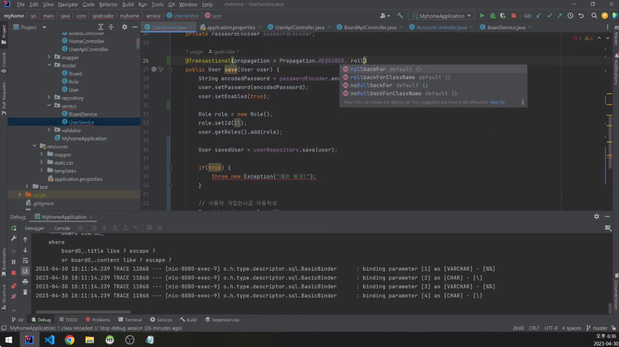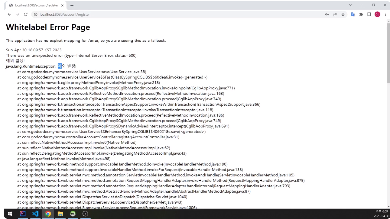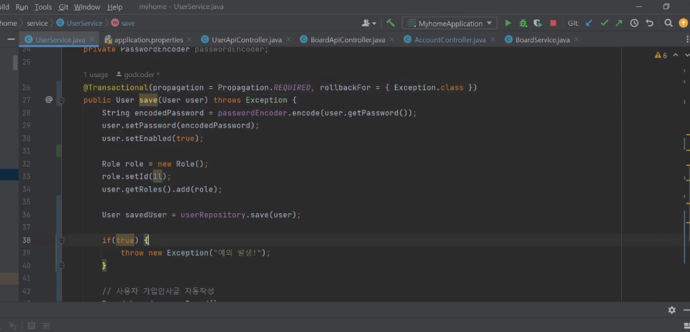 기본적으로 에러가 발생하면 롤백이 발생함.