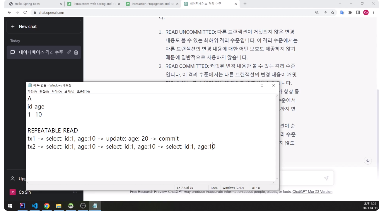 격리성에 따라서 동일한 쿼리를 날려도 값이 달라질 수 있음.