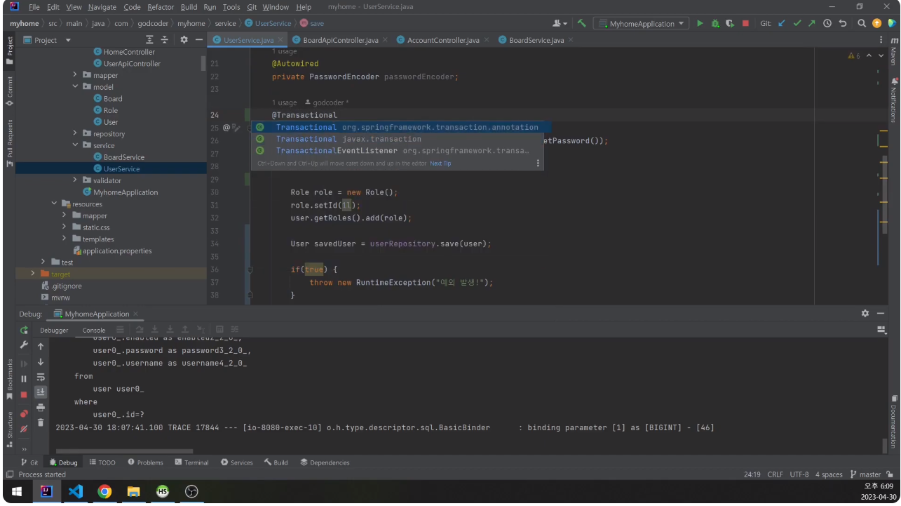 트랜잭션 적용하는 방법에 대해 알아보겠다.