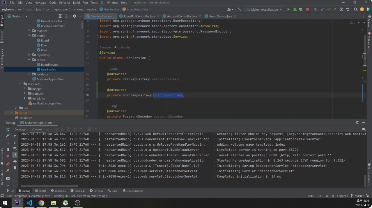 게시글 작성을 위해서는 board 클래스를 이용함.