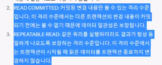 ORACLE의 기본값으로 READ COMMITTED가 있다.