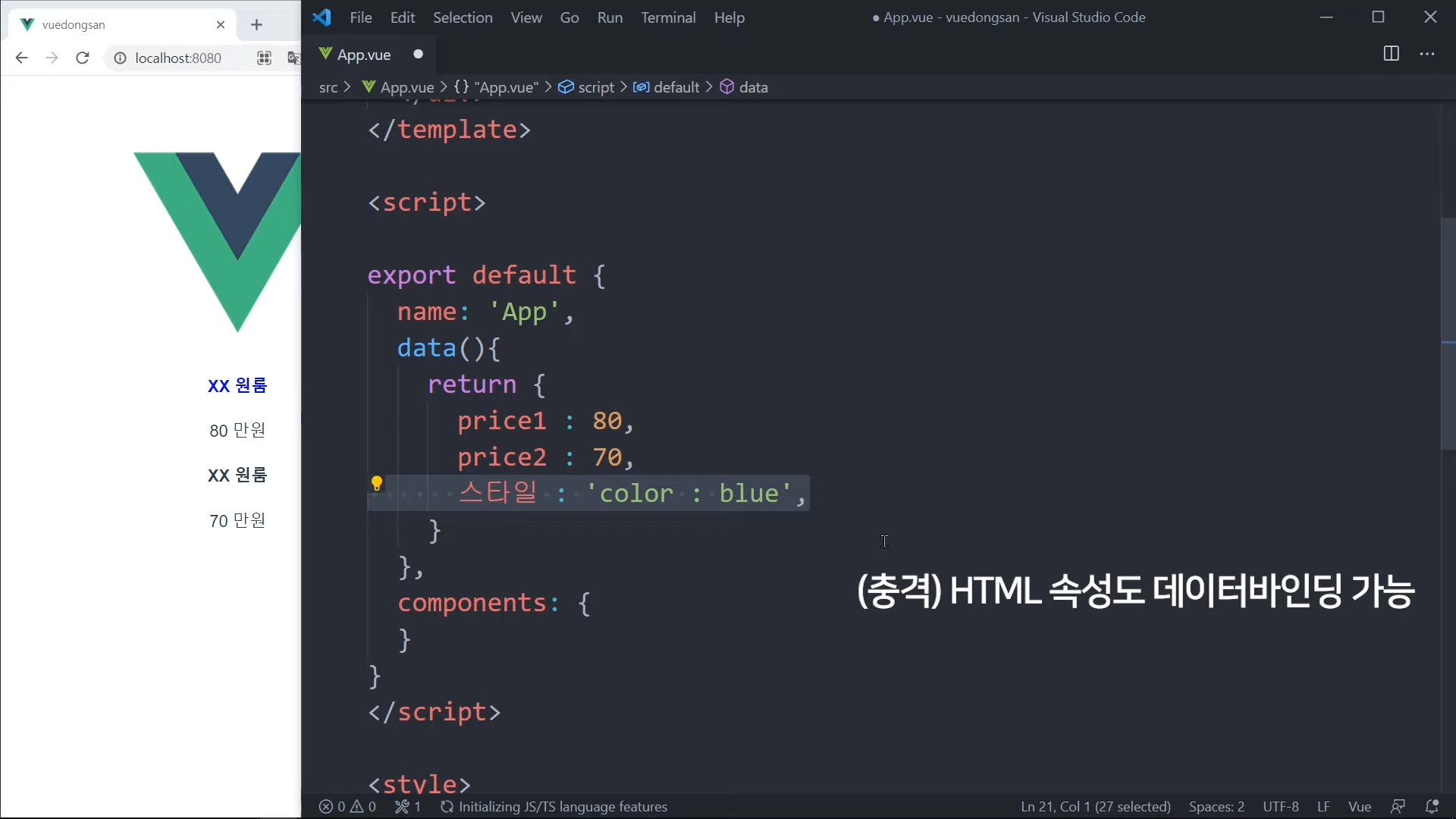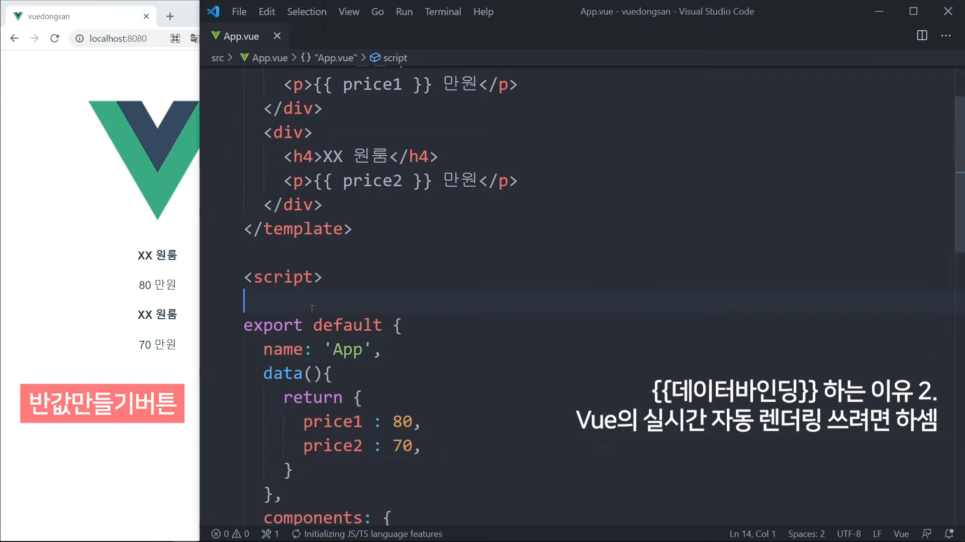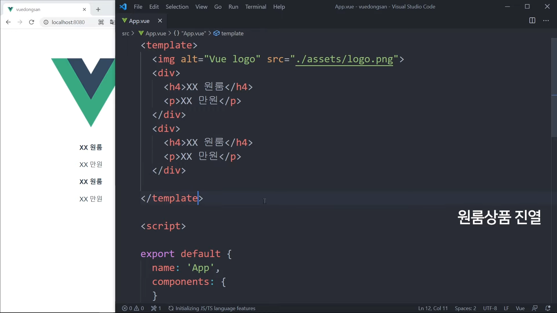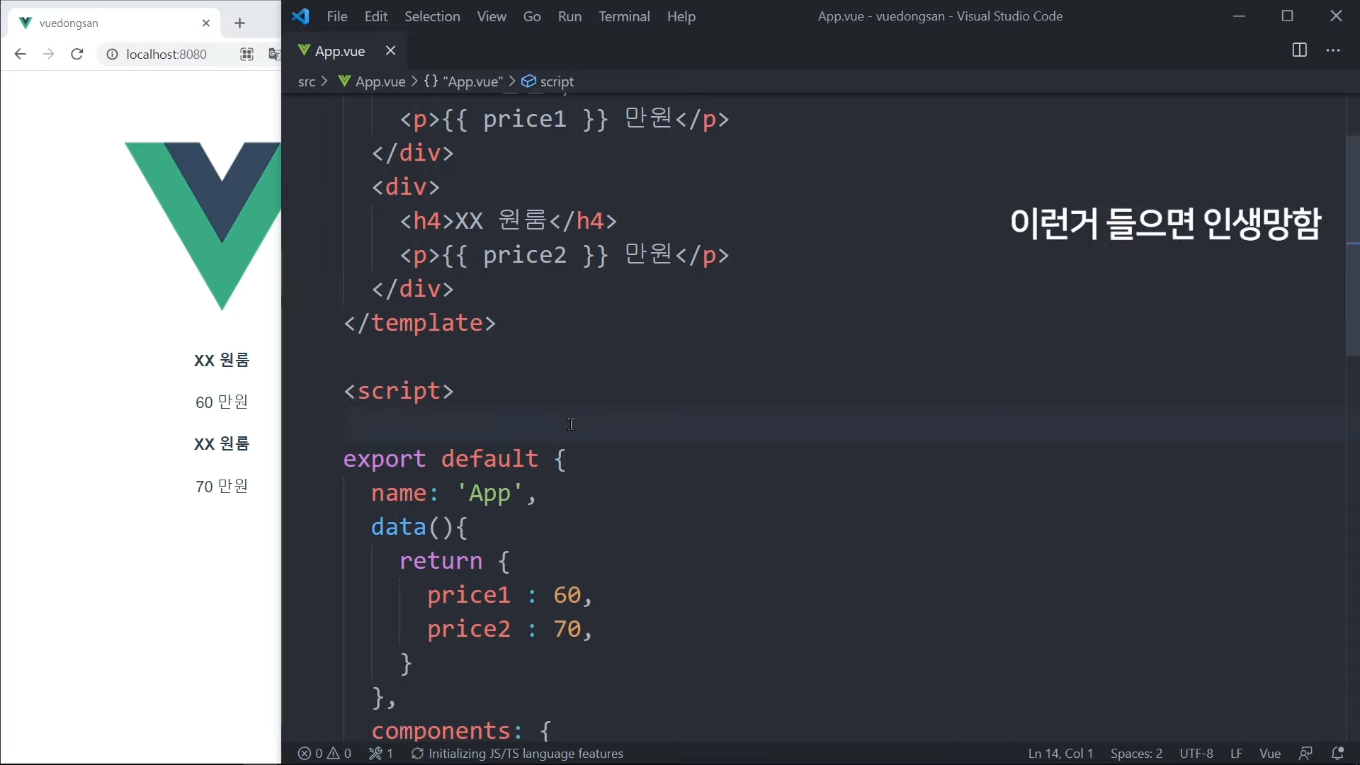 그냥 가격을 직접 적어도 되지만, Vue 문법으로 작성해볼 것임.