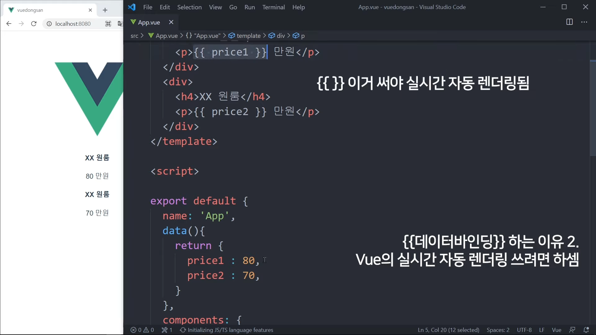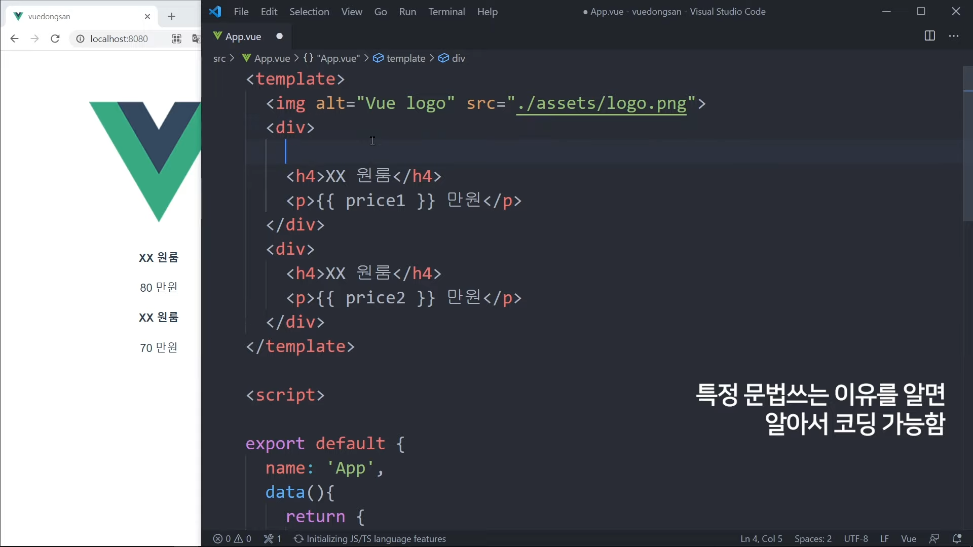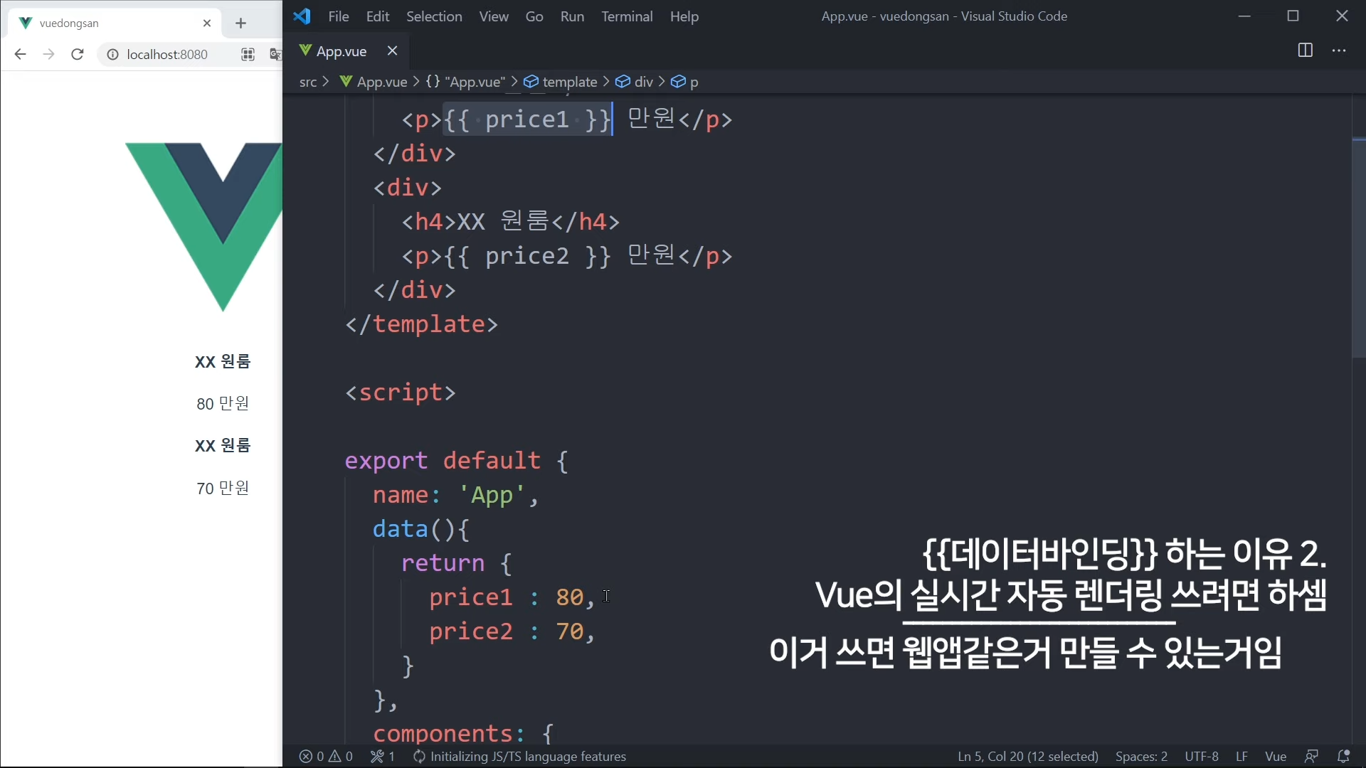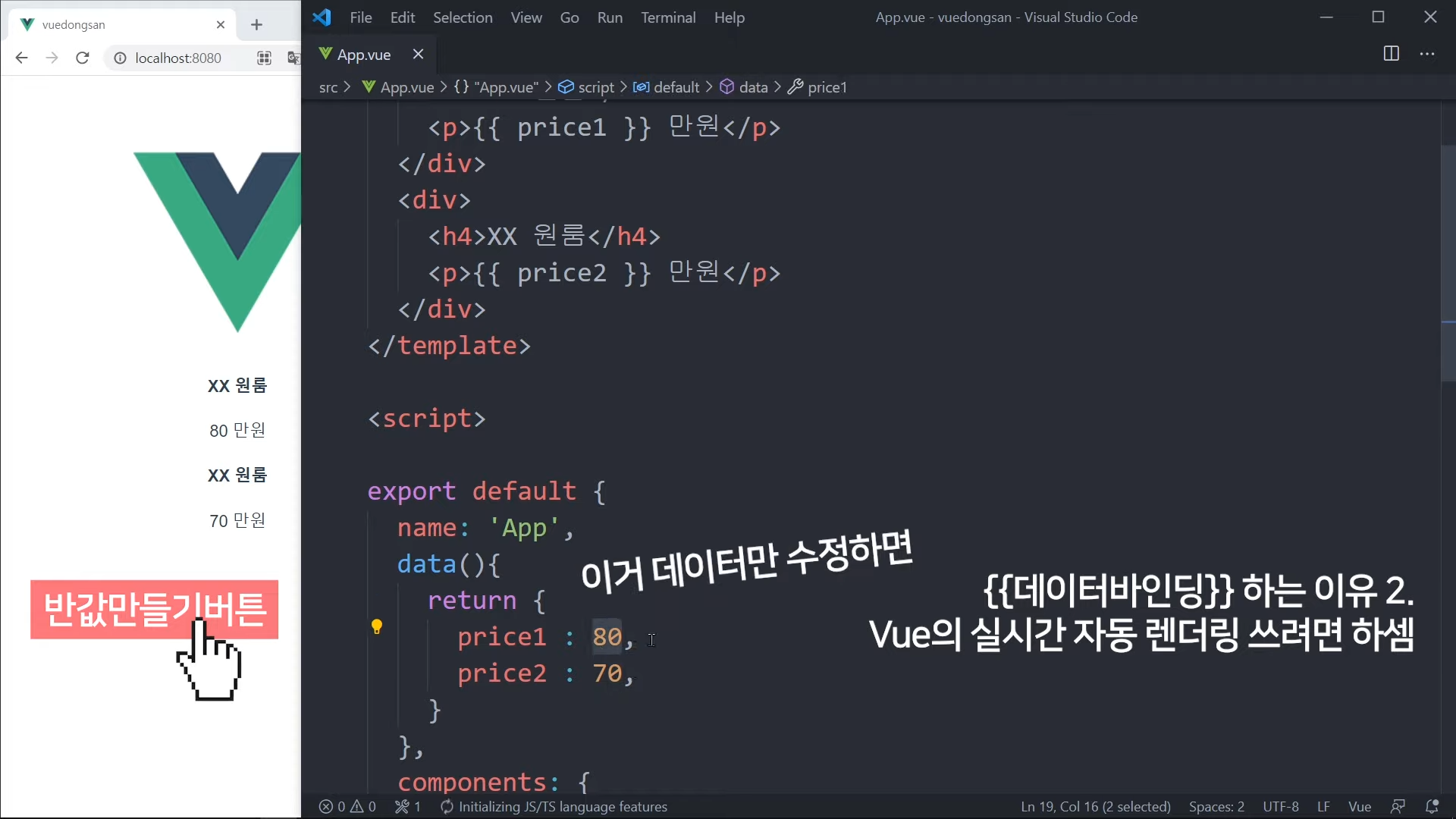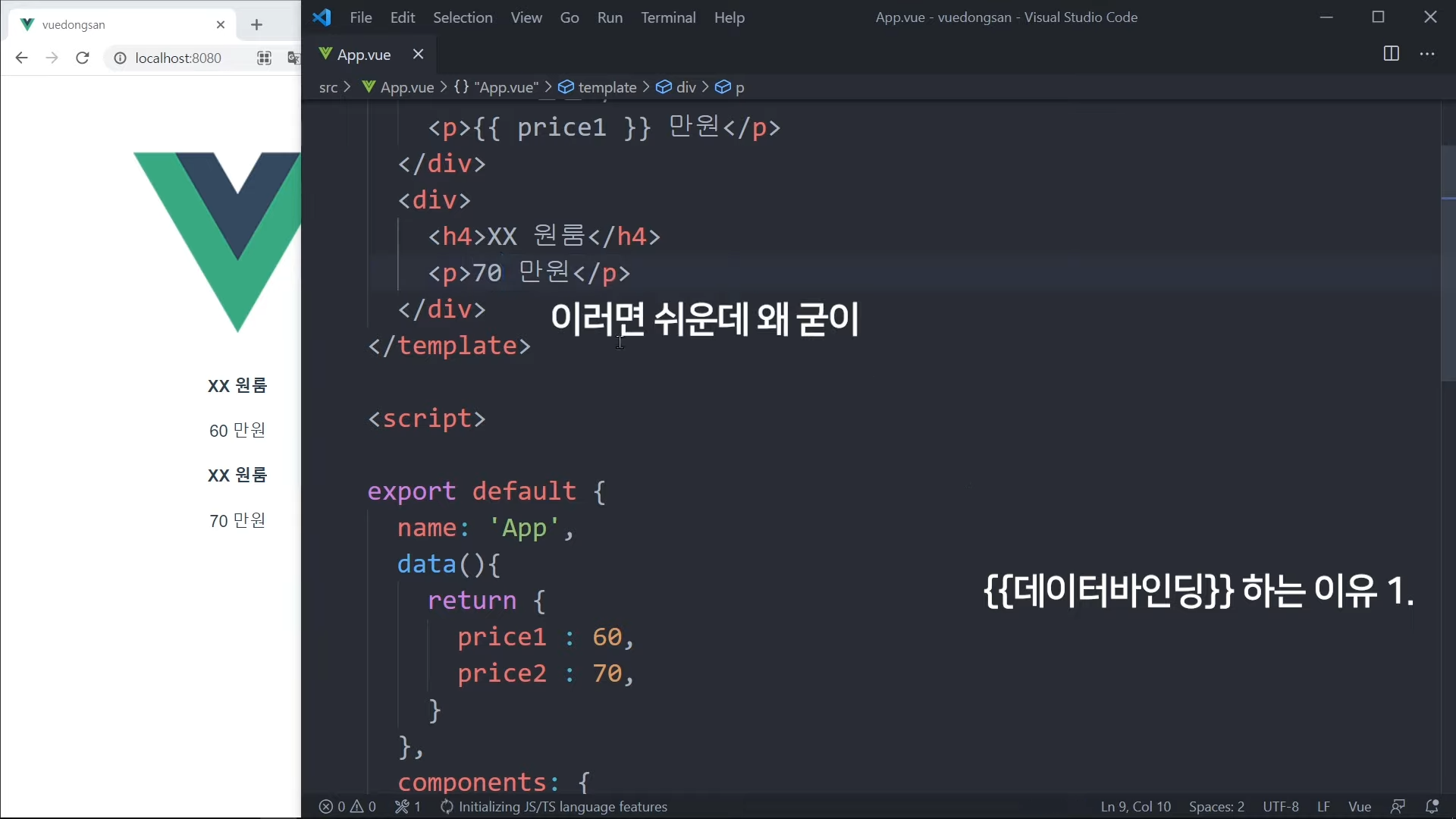 그냥 가격을 직접 적어도 되지만, Vue 문법으로 작성해볼 것임.