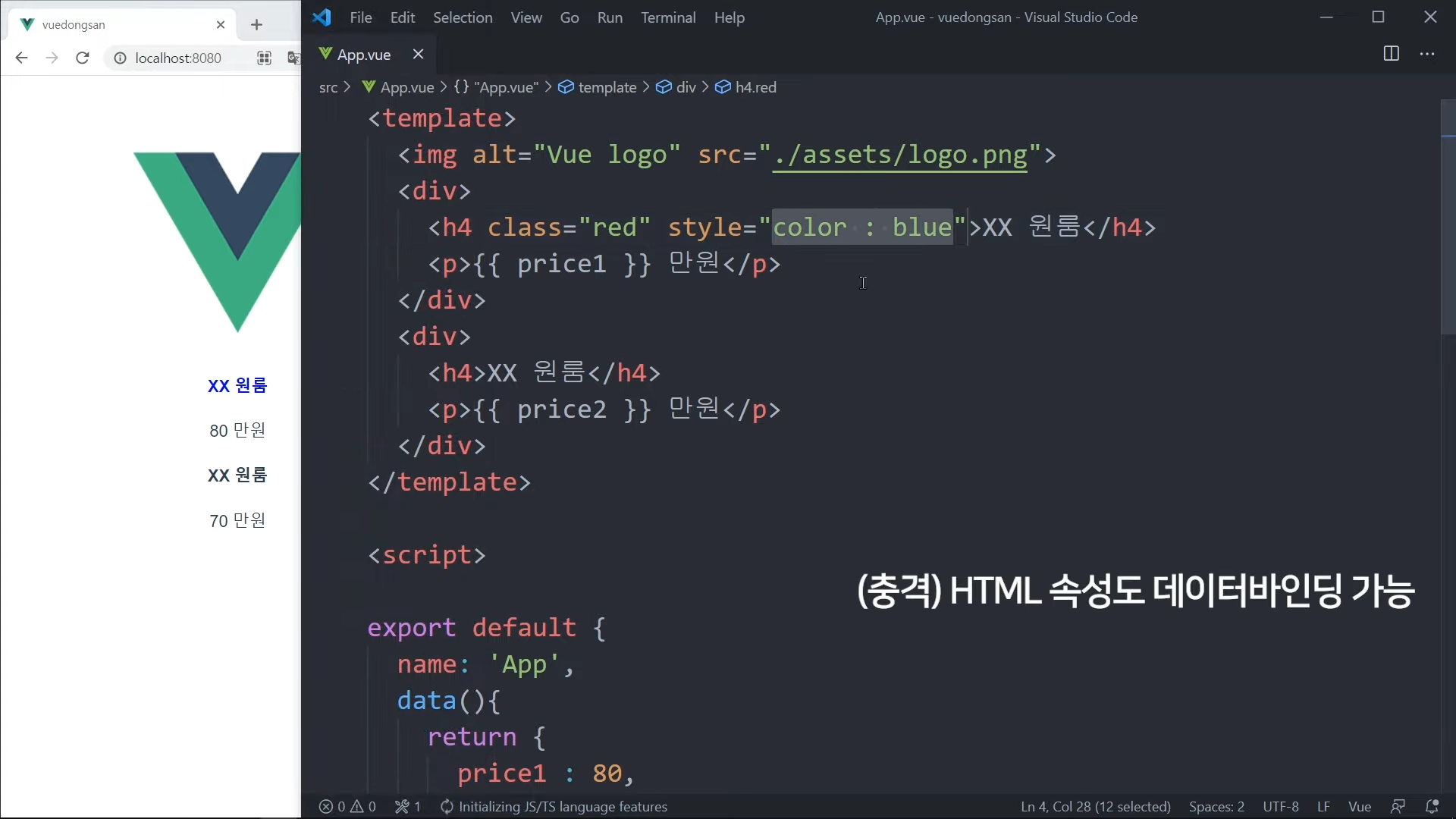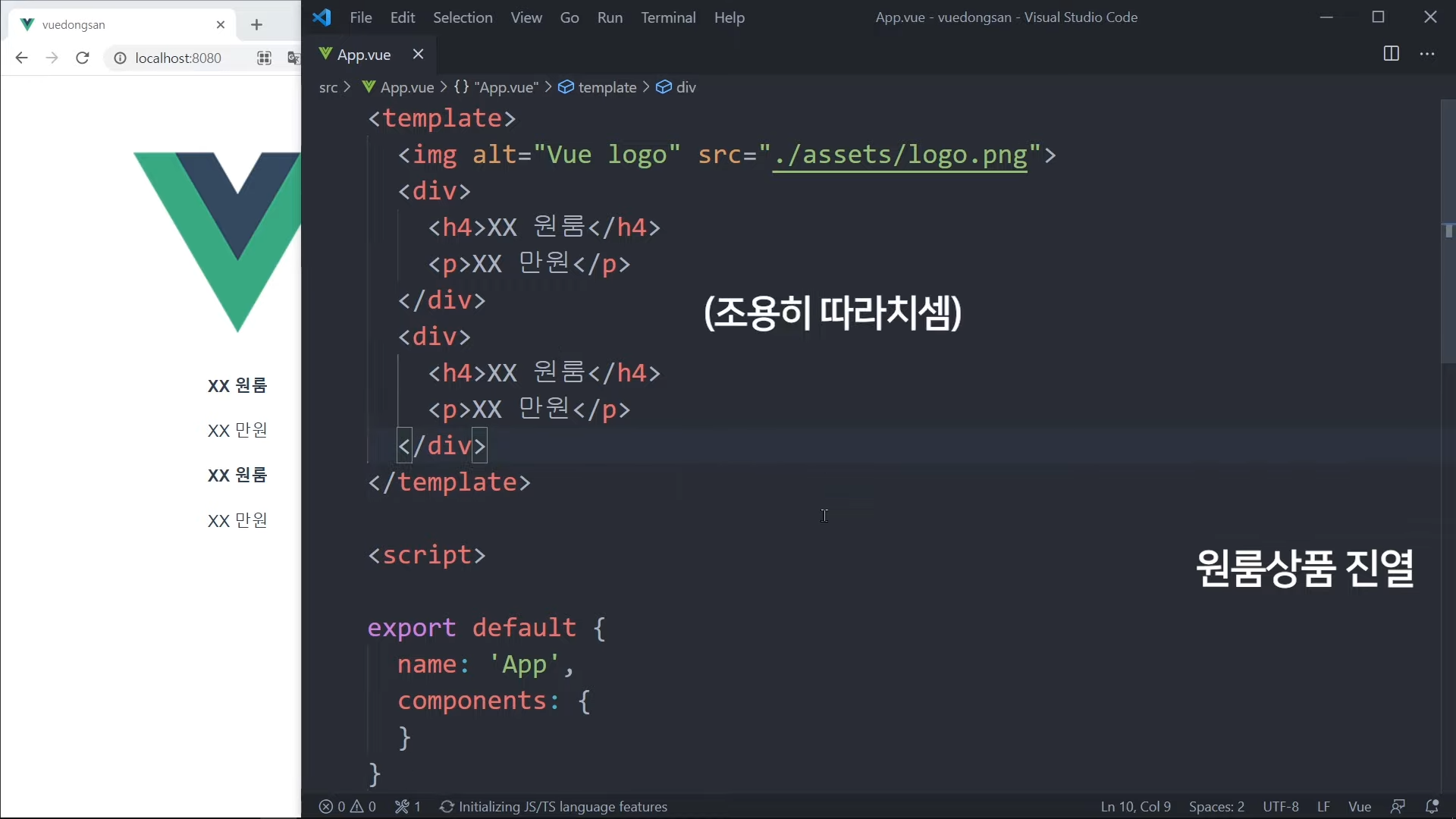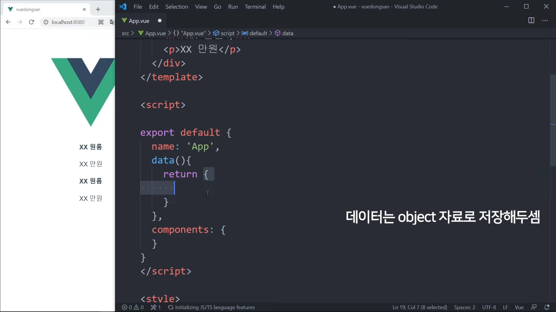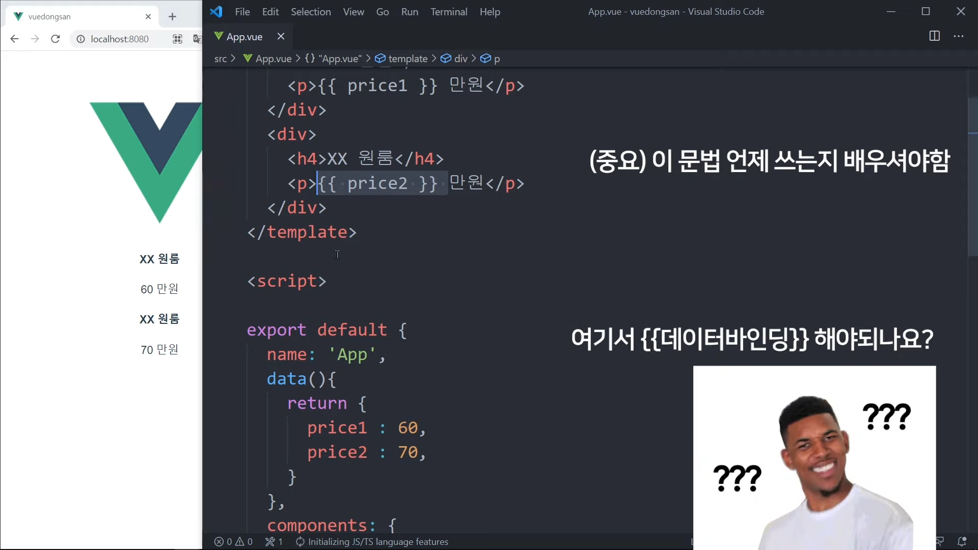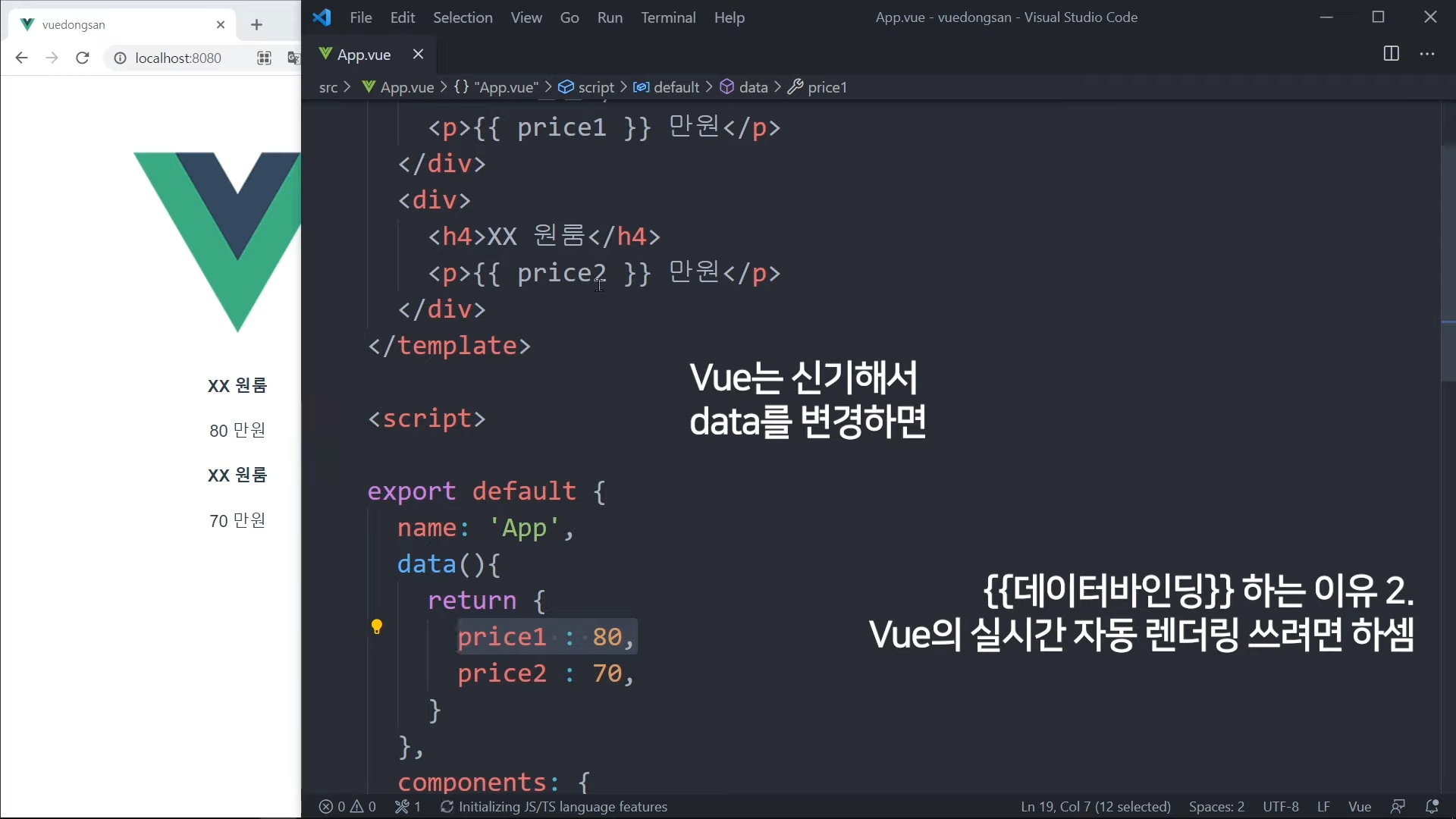 그냥 가격을 직접 적어도 되지만, Vue 문법으로 작성해볼 것임.