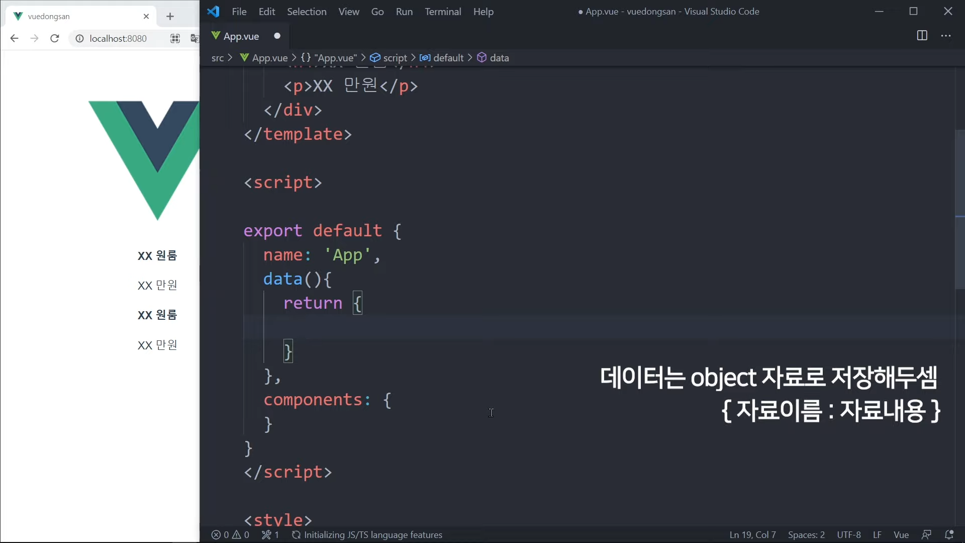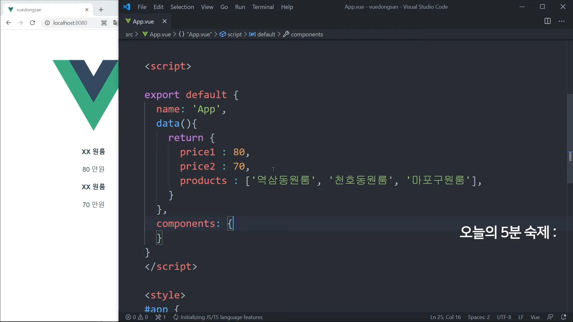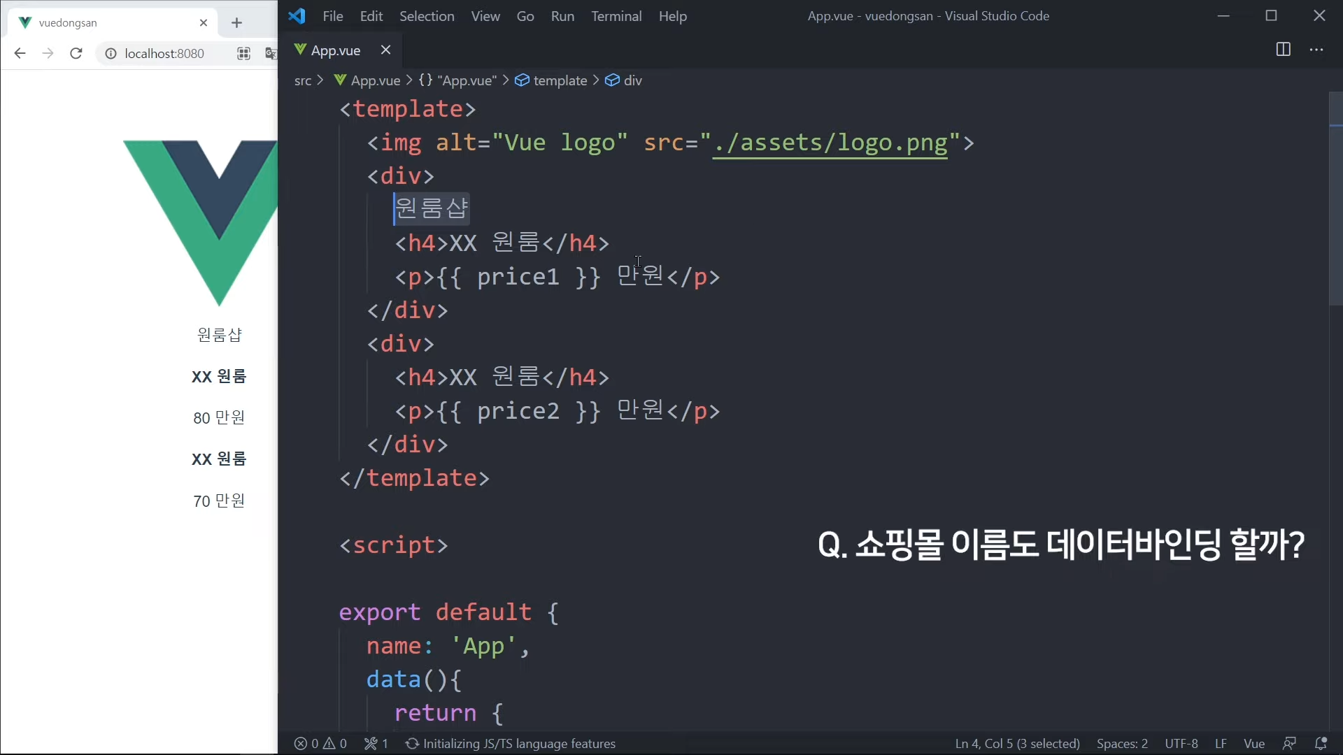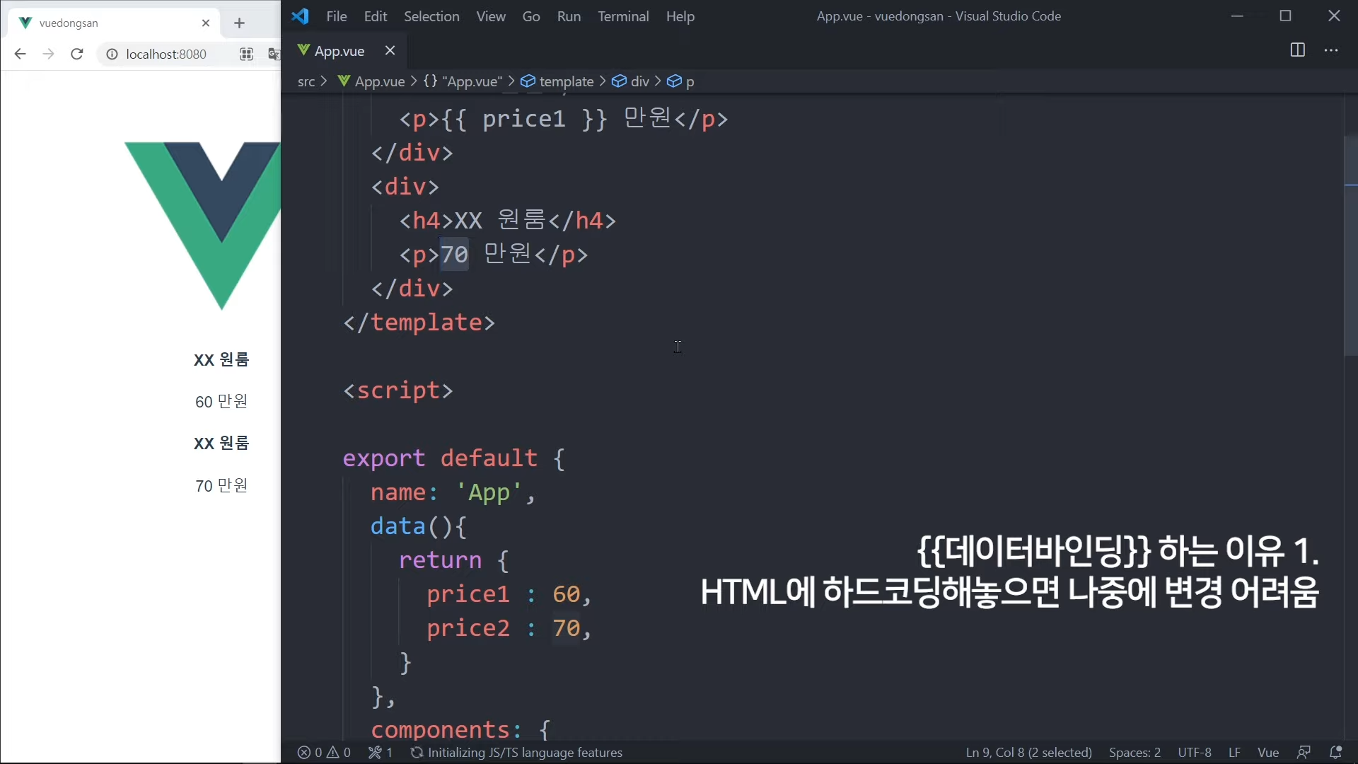 그냥 가격을 직접 적어도 되지만, Vue 문법으로 작성해볼 것임.