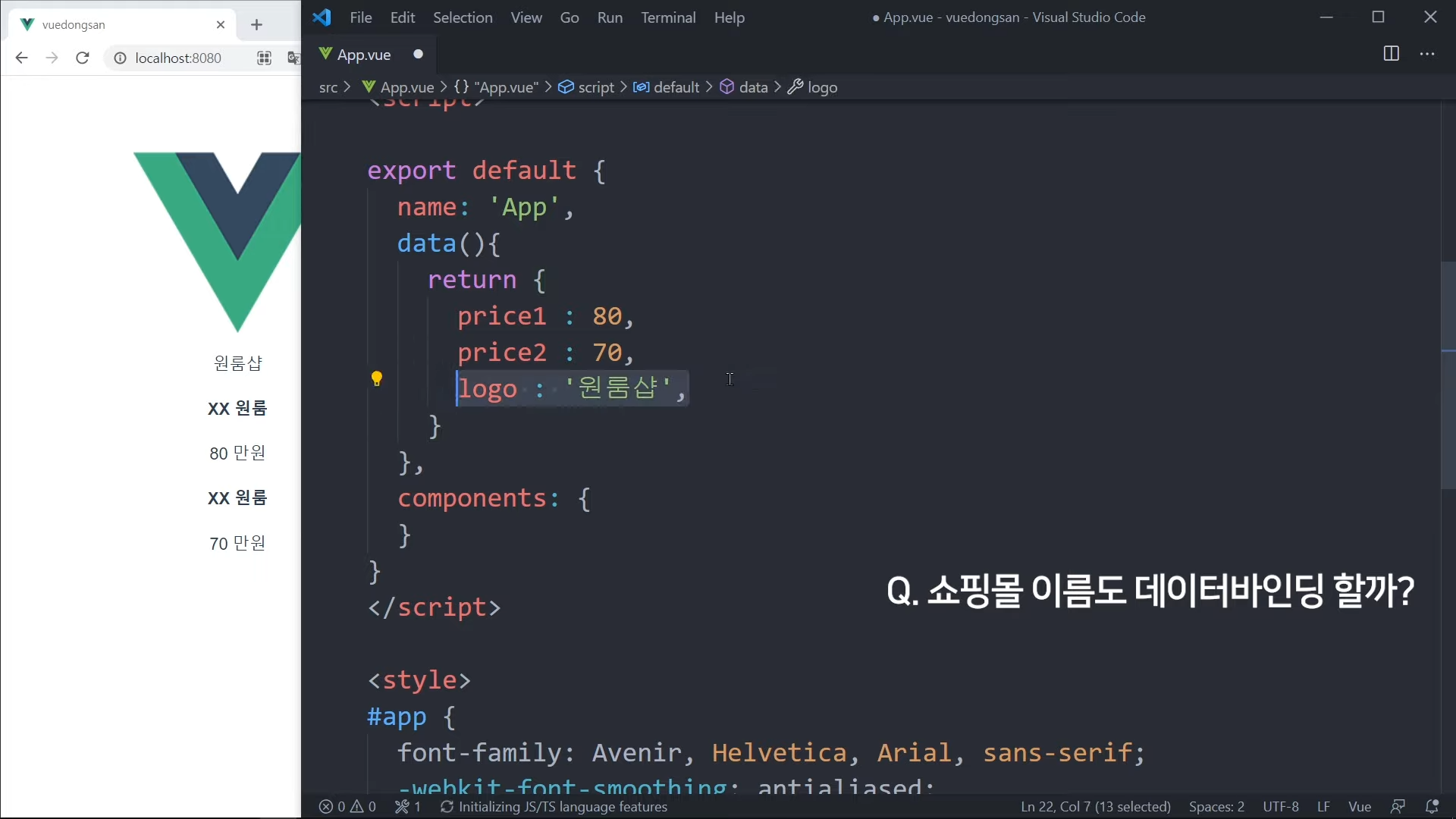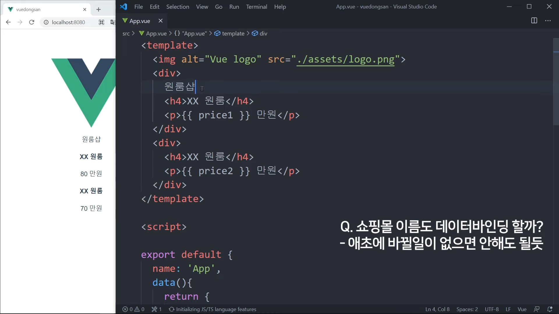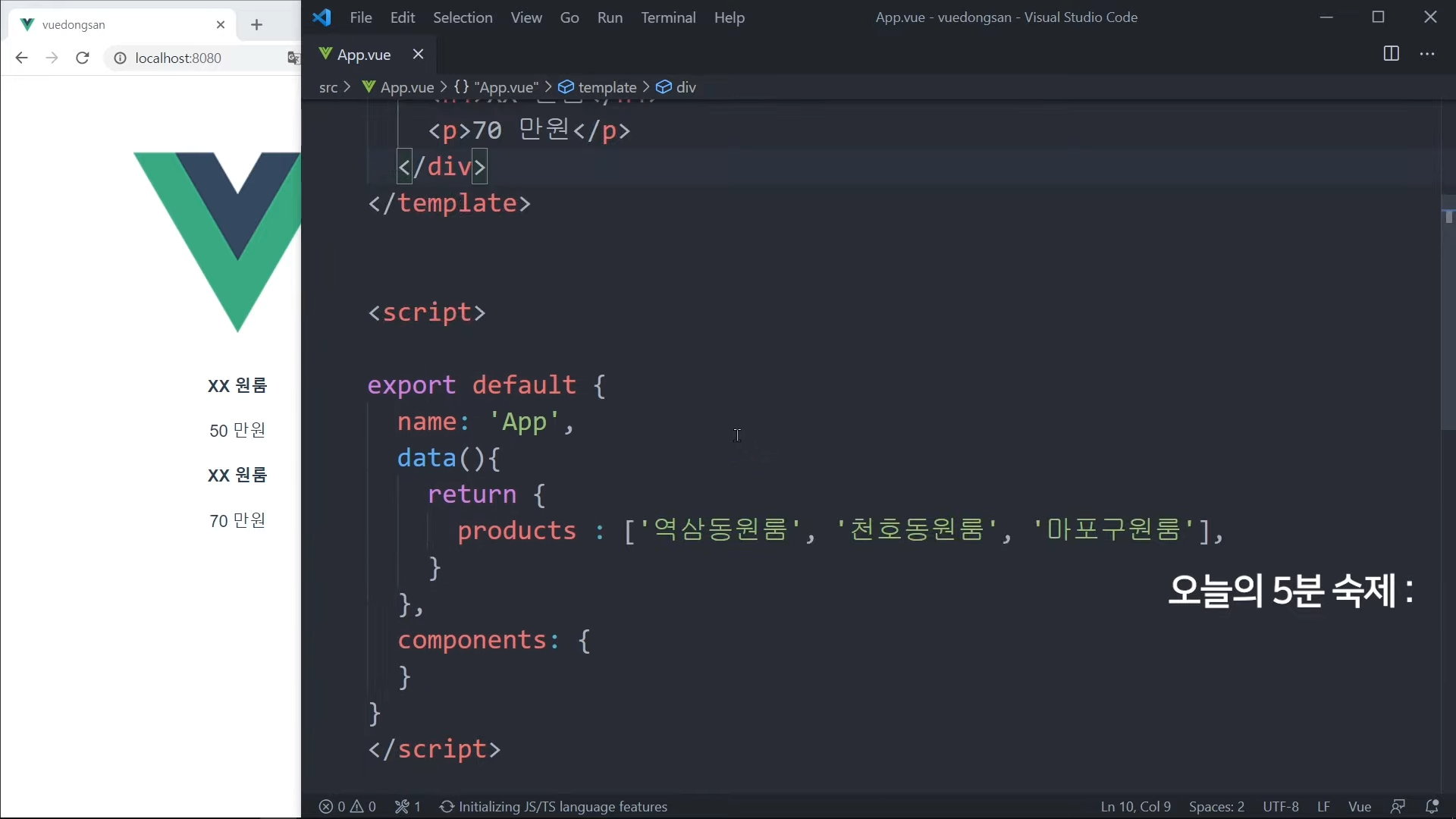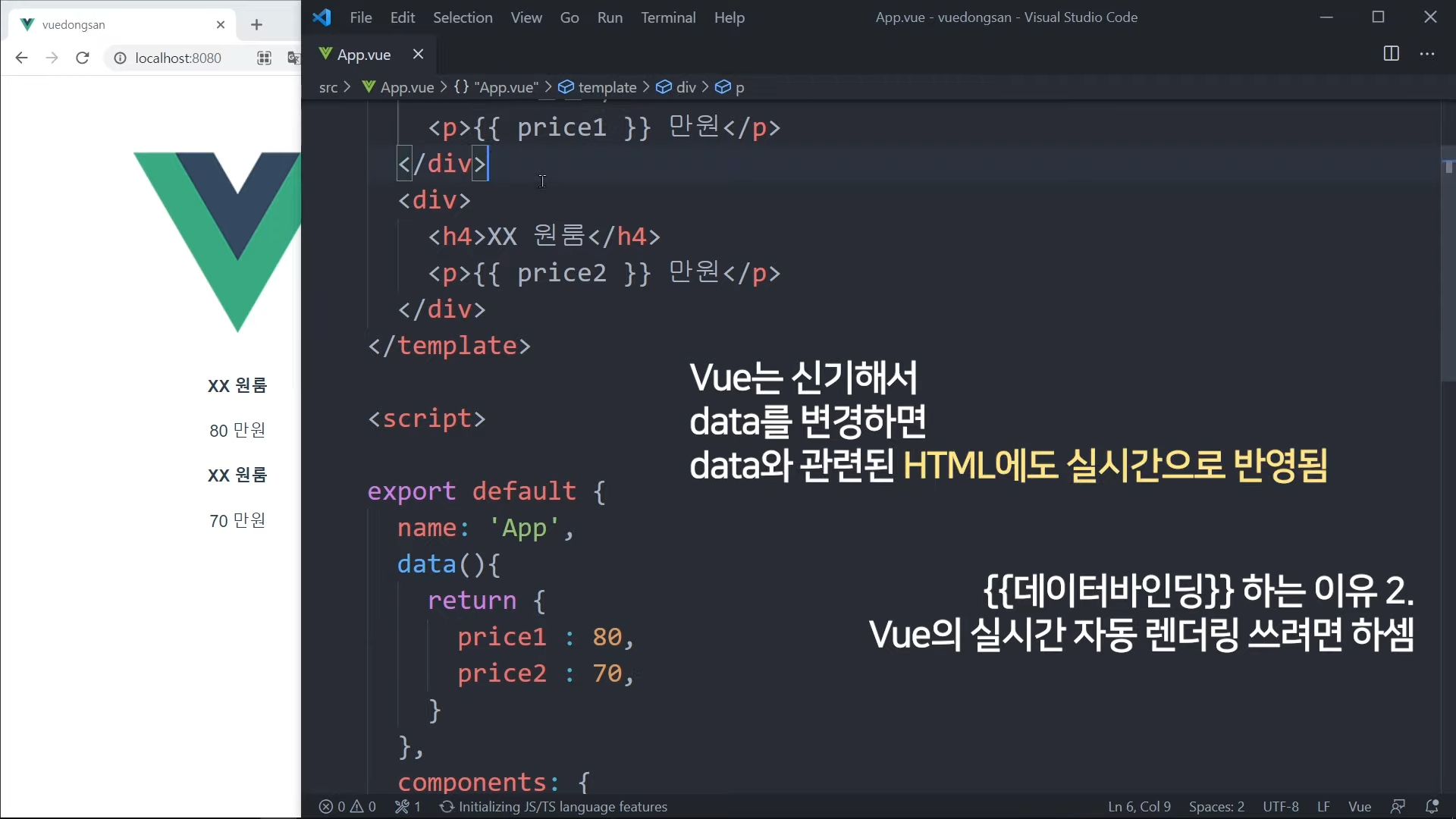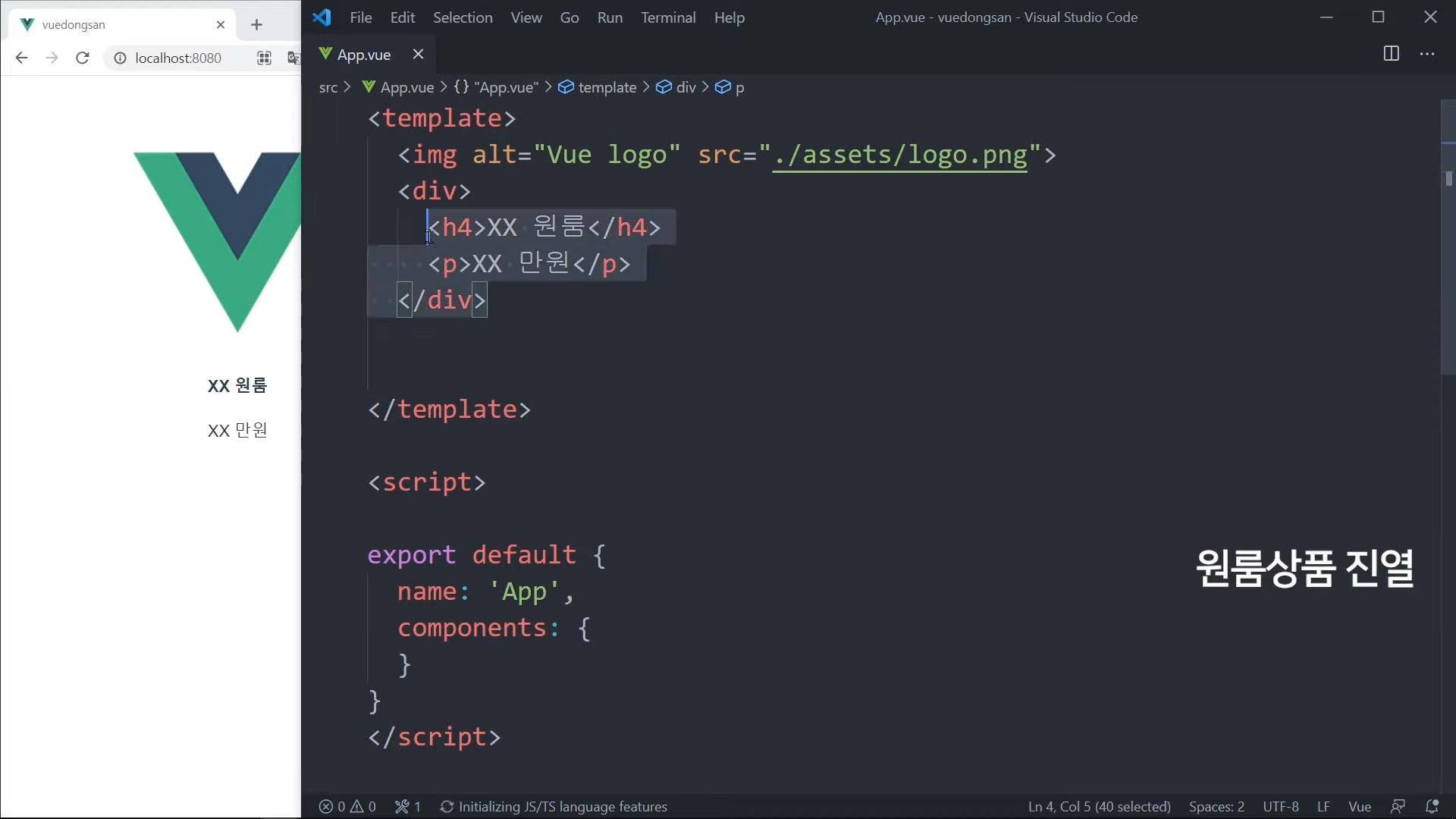 그냥 가격을 직접 적어도 되지만, Vue 문법으로 작성해볼 것임.