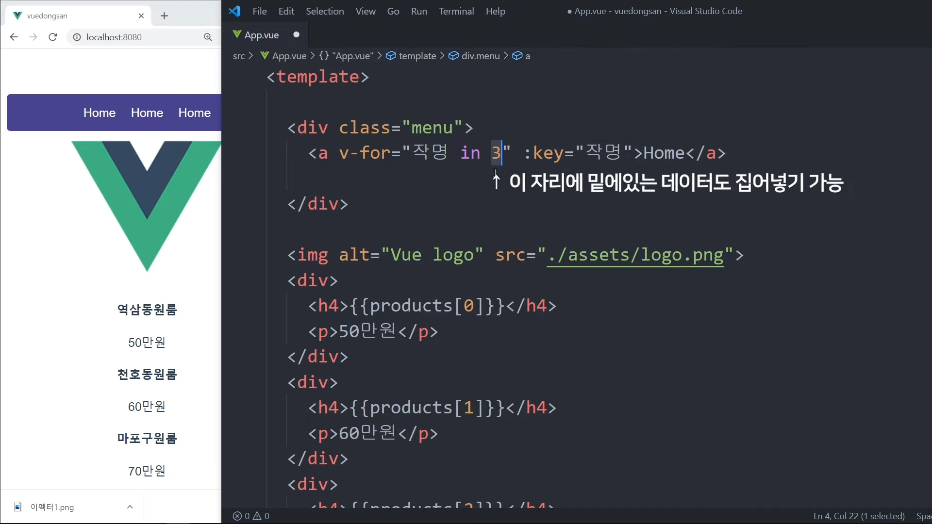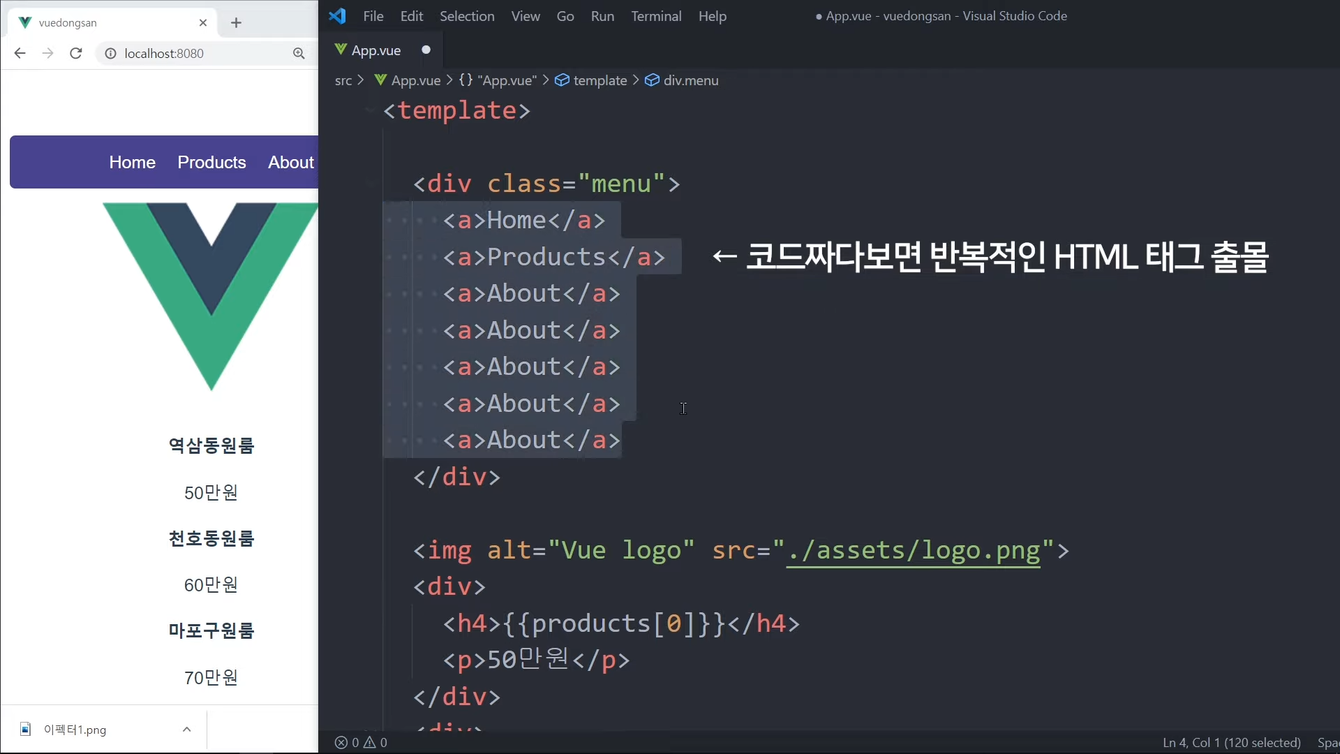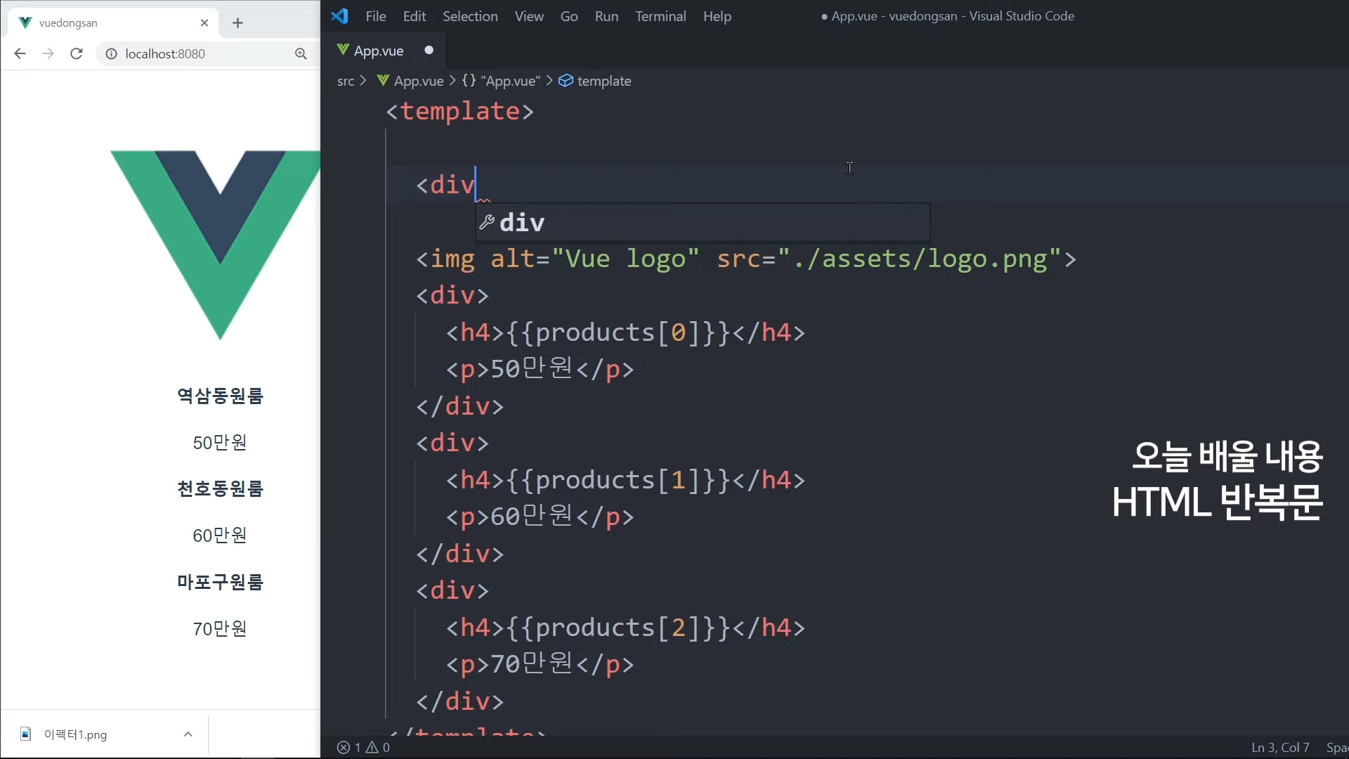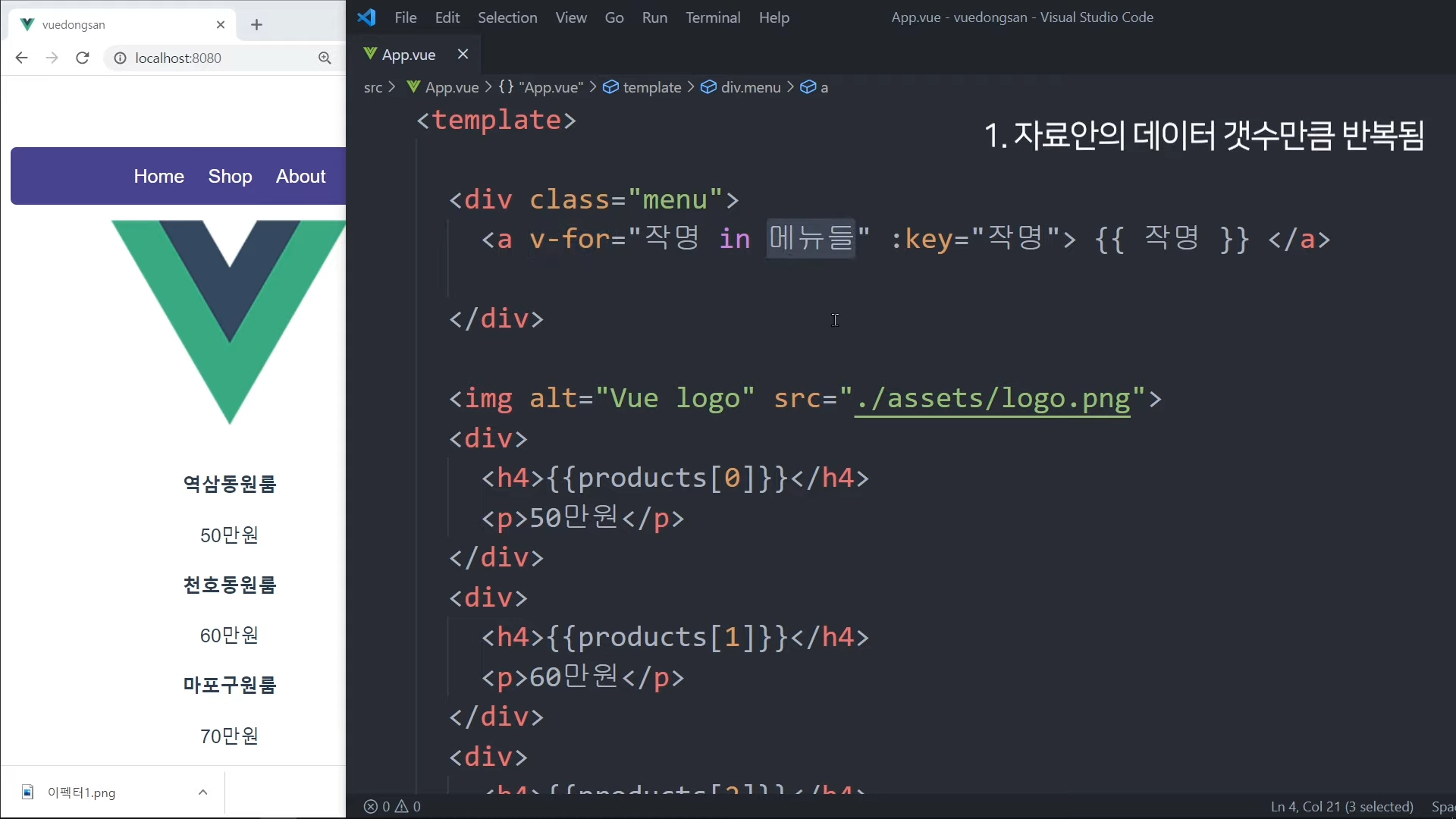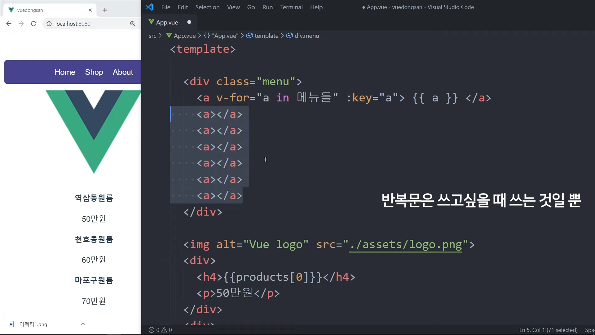 Vue를 사용하면 반복문으로 쉽게 반복들을 처리할 수 있음.