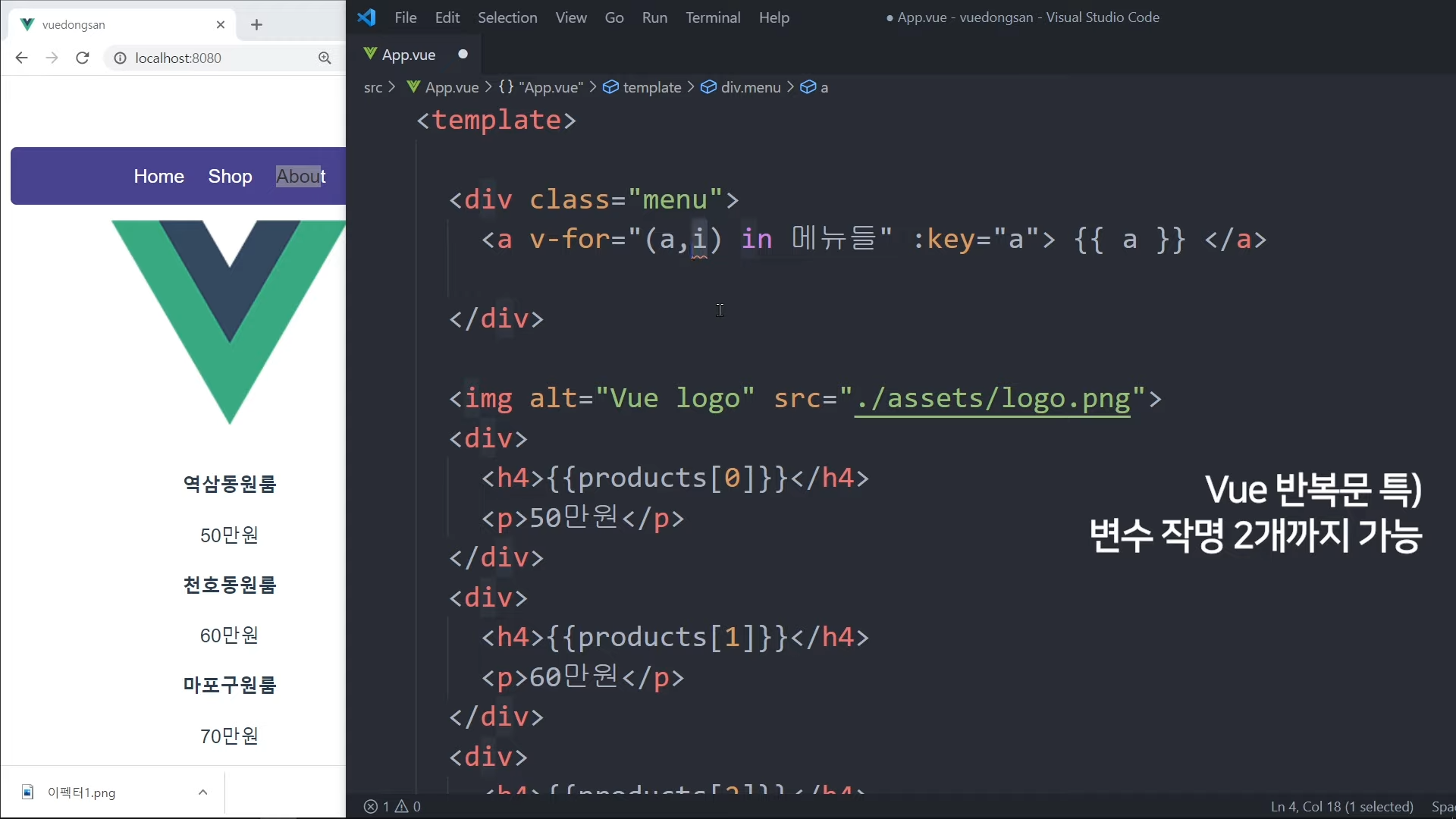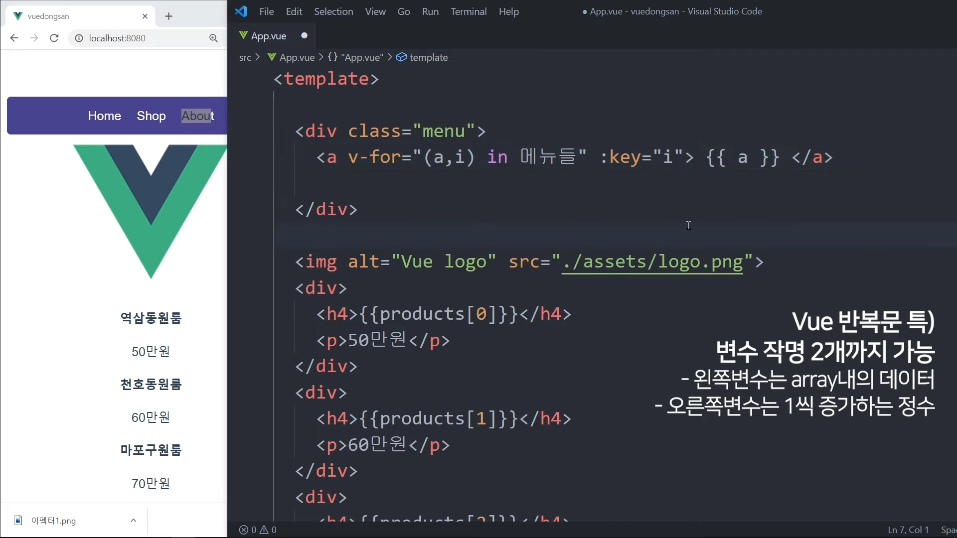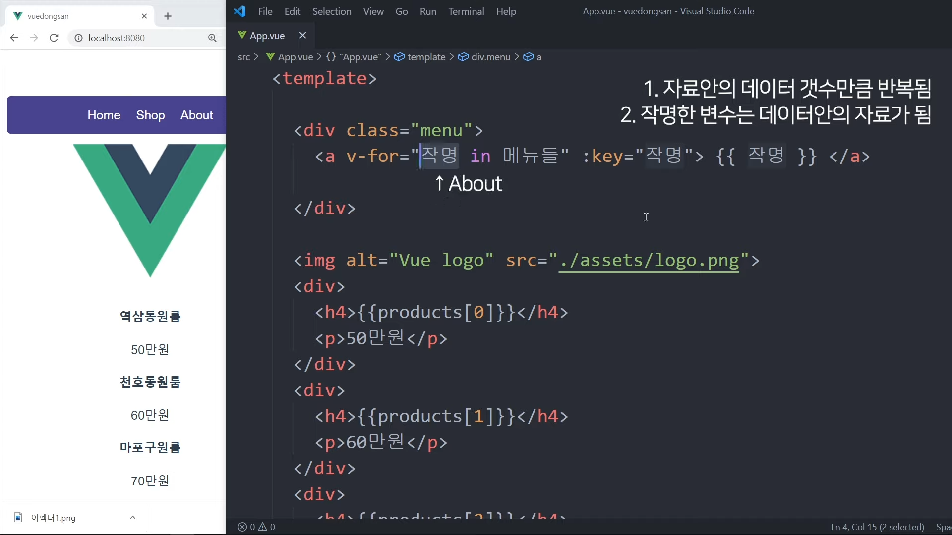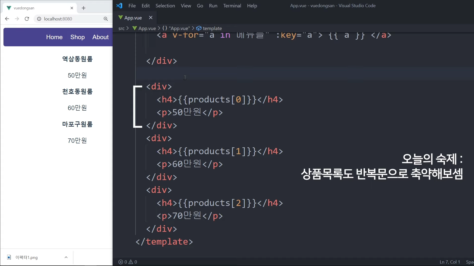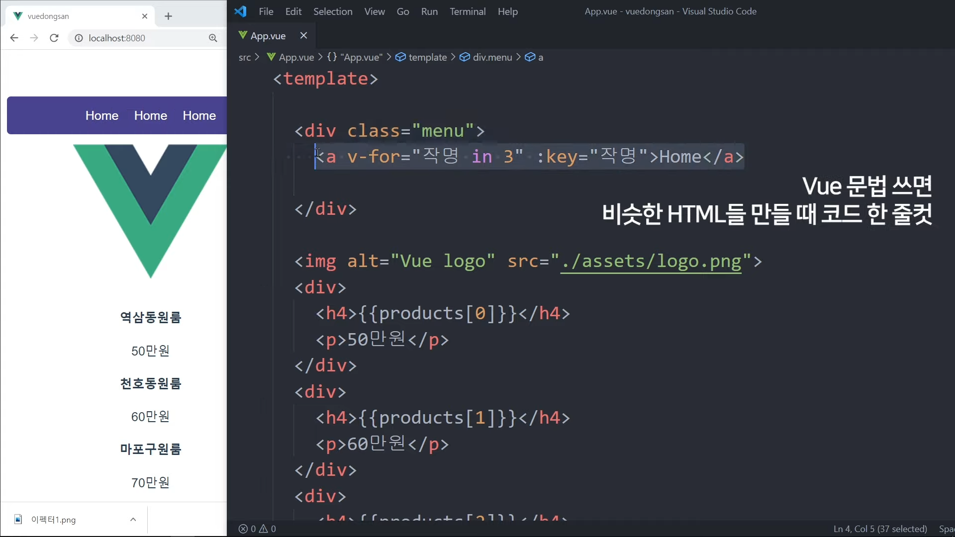 Vue를 사용하면 반복문으로 쉽게 반복들을 처리할 수 있음.