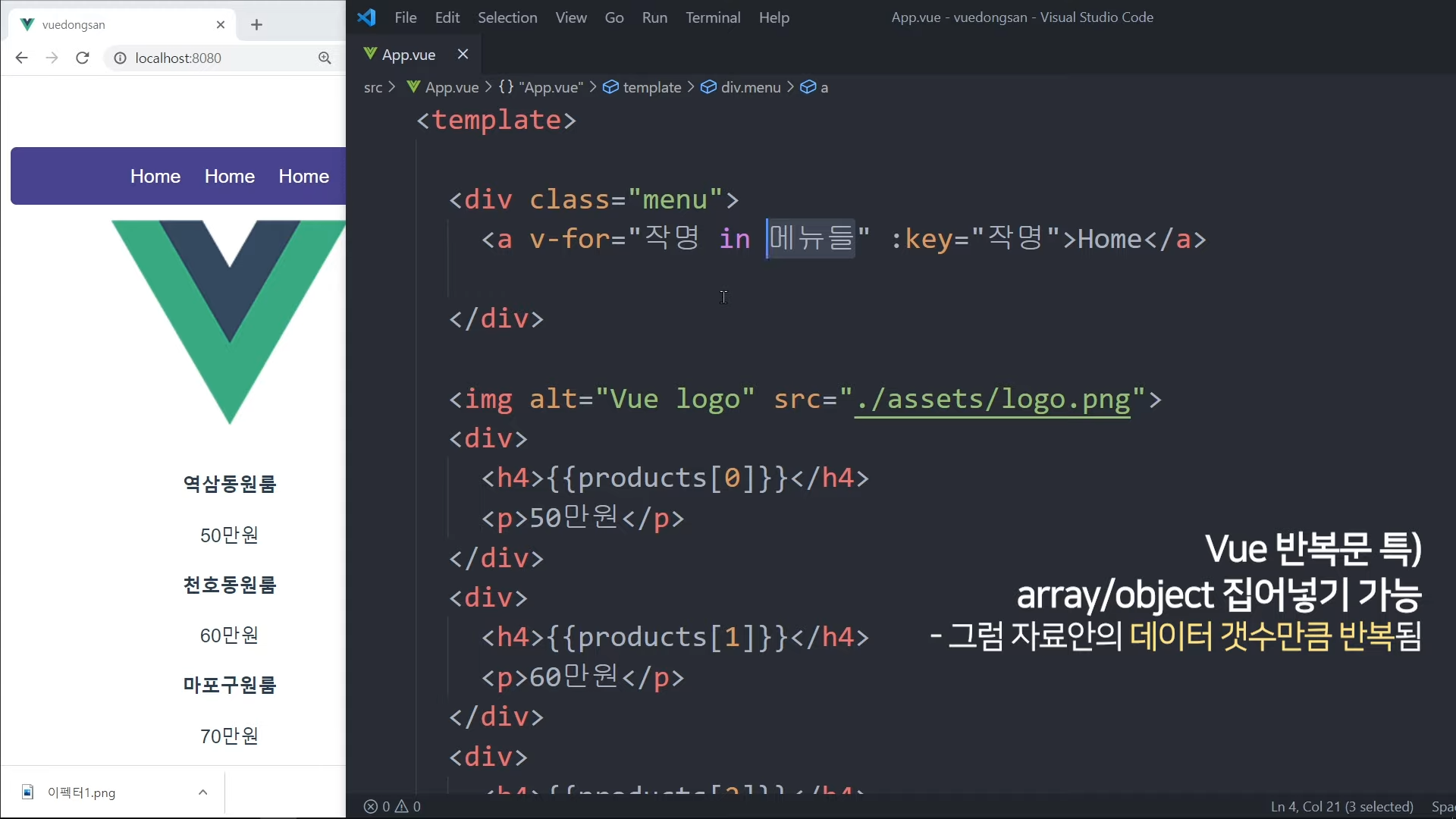 | Vue 4강 : 이벤트 핸들러로 허위매물 신고버튼 만들기 (0) | 2024.05.13 |