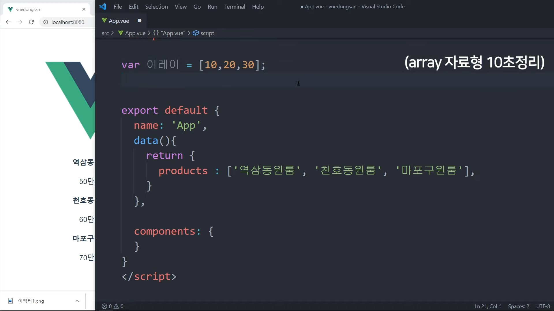 어레이[1]을 하면 첫번째 자료가 나옴.