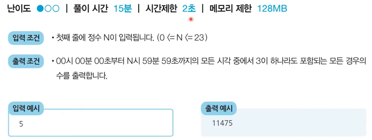 이 문제는가능한 모든 시각의 경우를 하나씩 모두 세서 풀 수 있는 문제입니다.