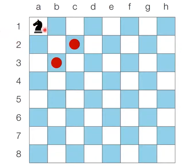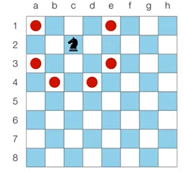 나이트는 말을 타고 있기 때문에 이동을 할 때는 L자 형태로만 이동할 수 있으며 정원 밖으로는 나갈 수 없습니다.
